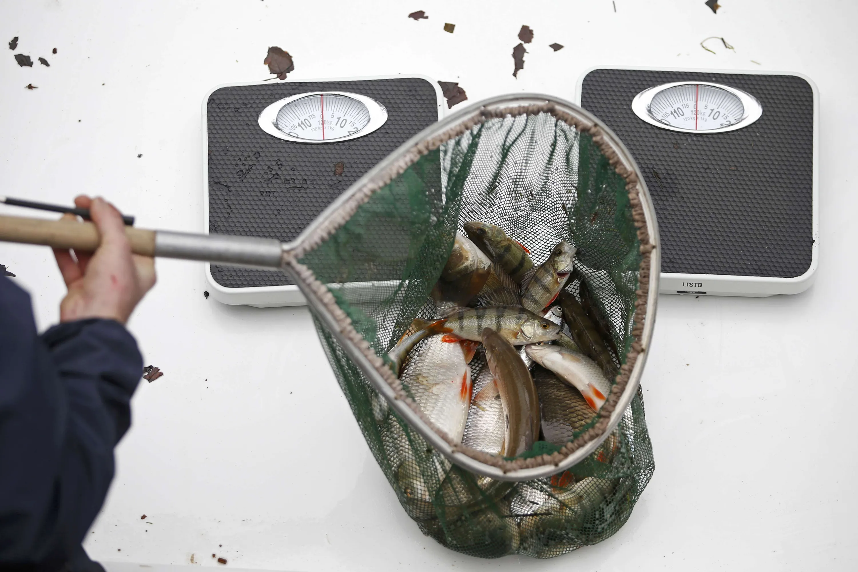 A worker weighs fish caught during the draining of the Canal Saint-Martin in Paris, France, January 5, 2016. (Photo by Charles Platiau/Reuters)