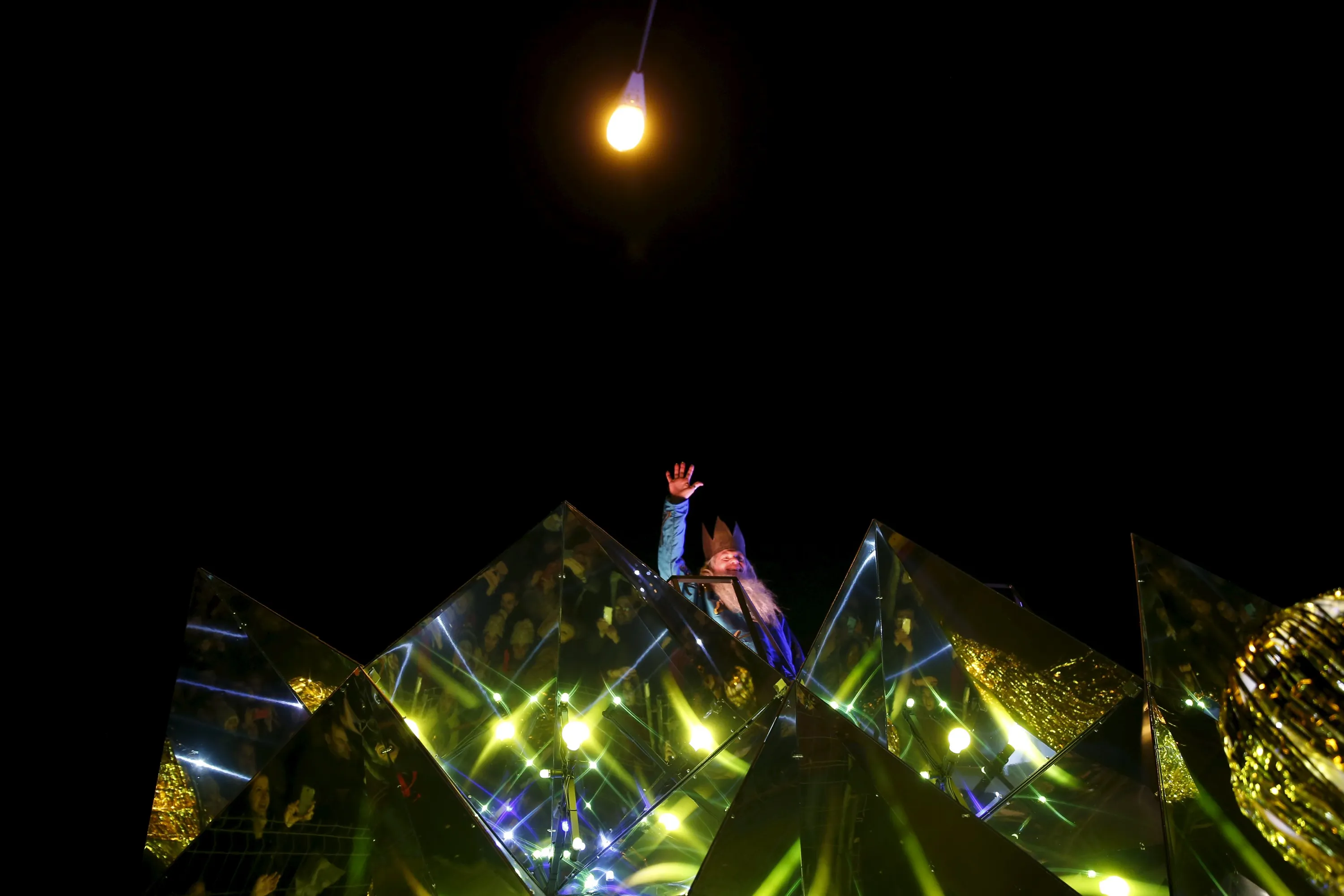 A man dressed as Melchior, one of the Three Wise Men, waves as people are reflected on his float during the traditional Epiphany parade in Madrid, Spain, January 5, 2016. (Photo by Susana Vera/Reuters)