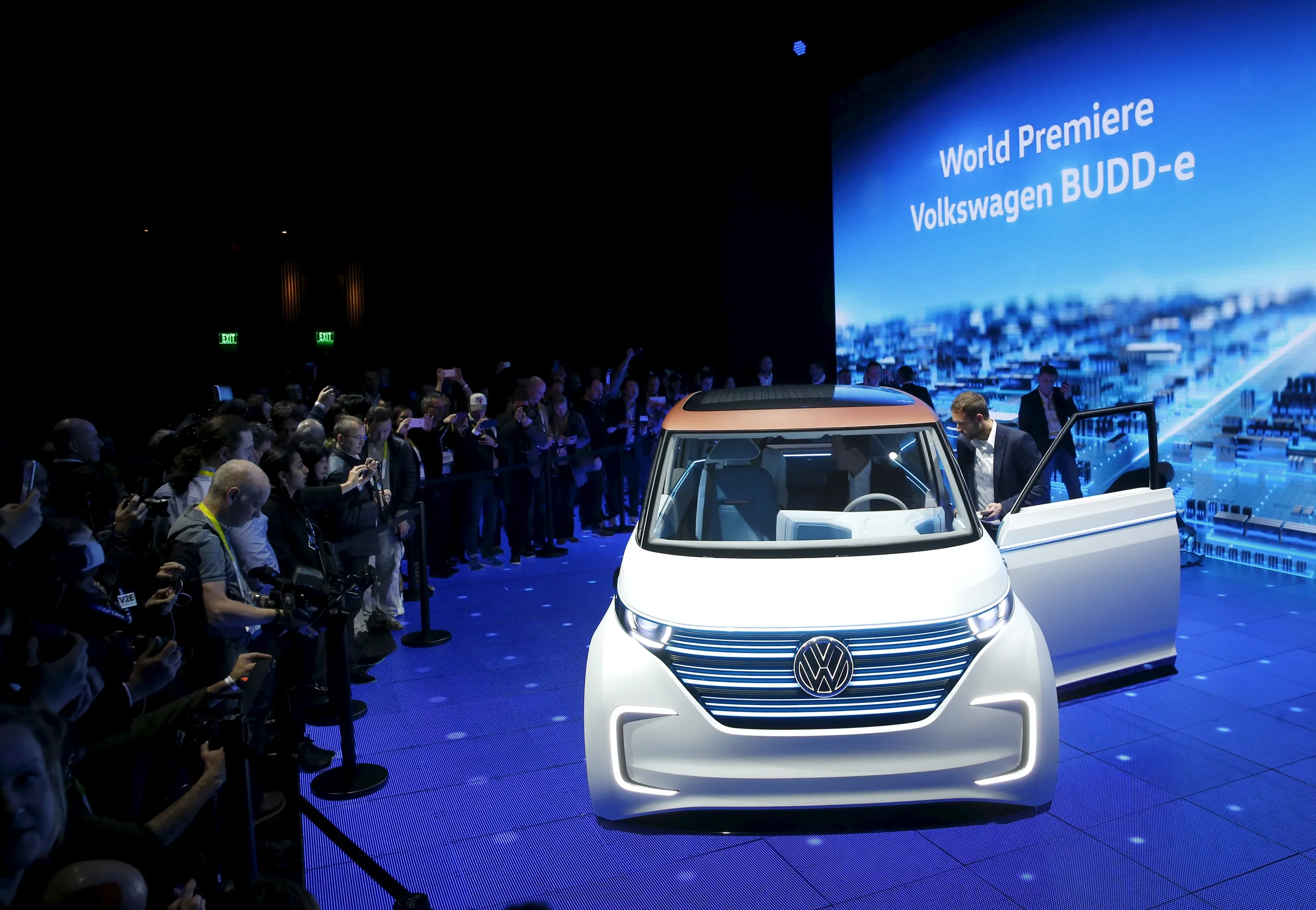 Journalists take a look at the Volkswagen BUDD-e electric vehicle after its unveiling during a keynote address at the 2016 CES trade show in Las Vegas, Nevada, January 5, 2016. (Photo by Steve Marcus/Reuters)