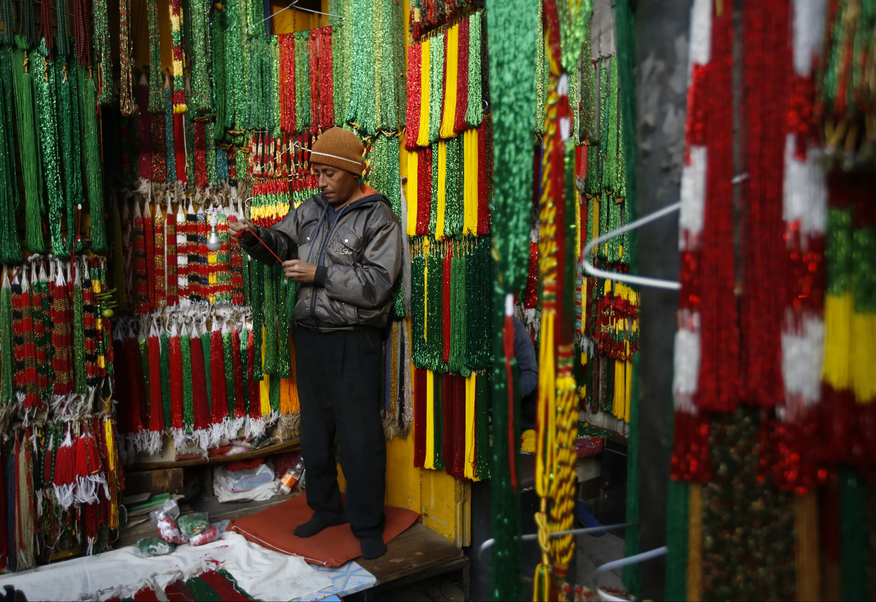 A vendor selling glass bead necklaces works at his stall along the streets of Kathmandu, Nepal January 5, 2016. (Photo by Navesh Chitrakar/Reuters)