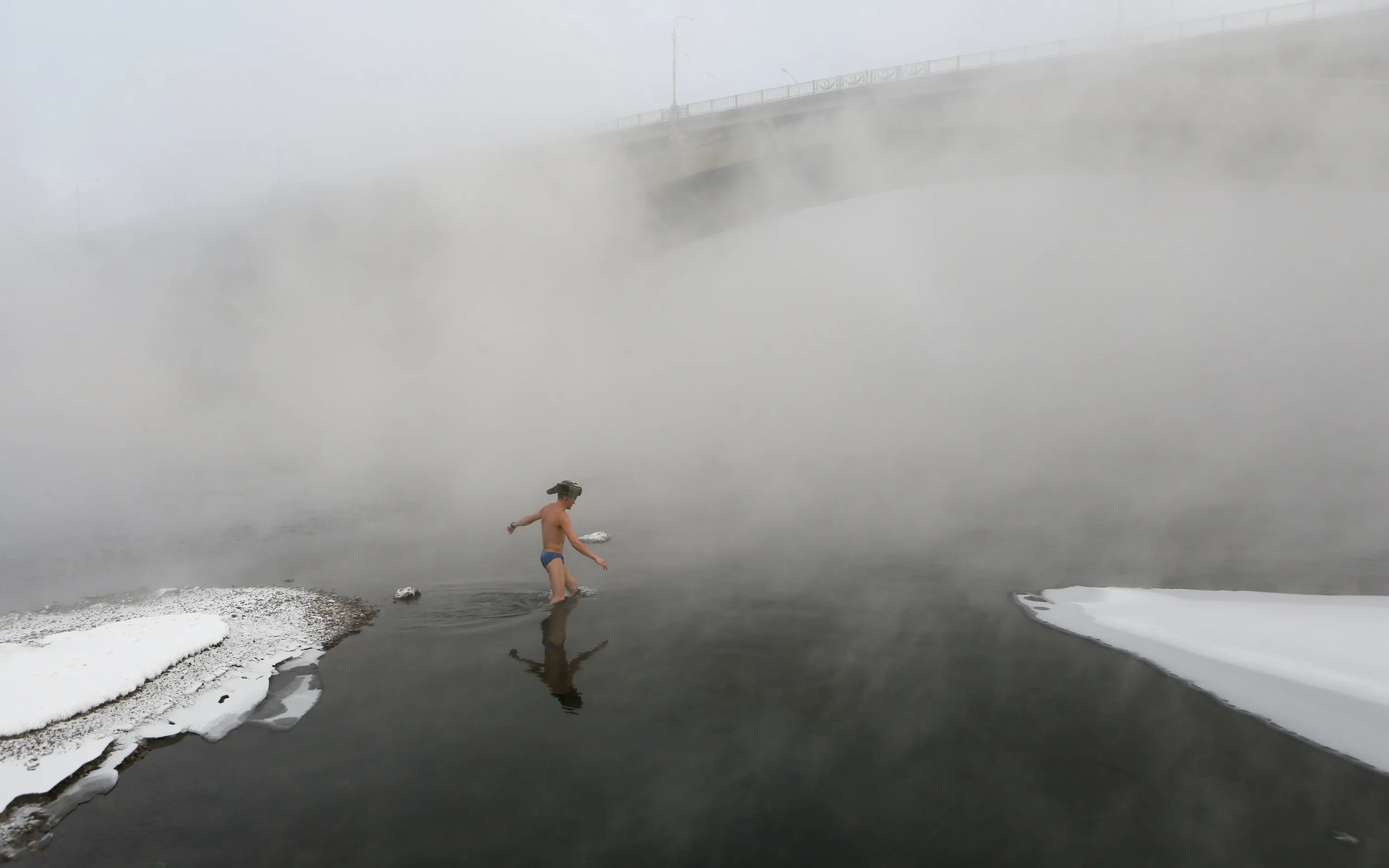 Mikhail Shakov, 23, who recently left the army and is a member of the Cryophile winter swimmers club, enters the icy water of the Yenisei River on the first day after returning from military service in the Siberian city of Krasnoyarsk, Russia, November 21, 2015. The air temperature was some minus 27 degrees Celsius. For Shakov, swimming is a way of disconnecting from daily life and setting his troubles to one side. "All problems leave me," he says. "The world around me seems beautiful". (Photo by Ilya Naymushin/Reuters)