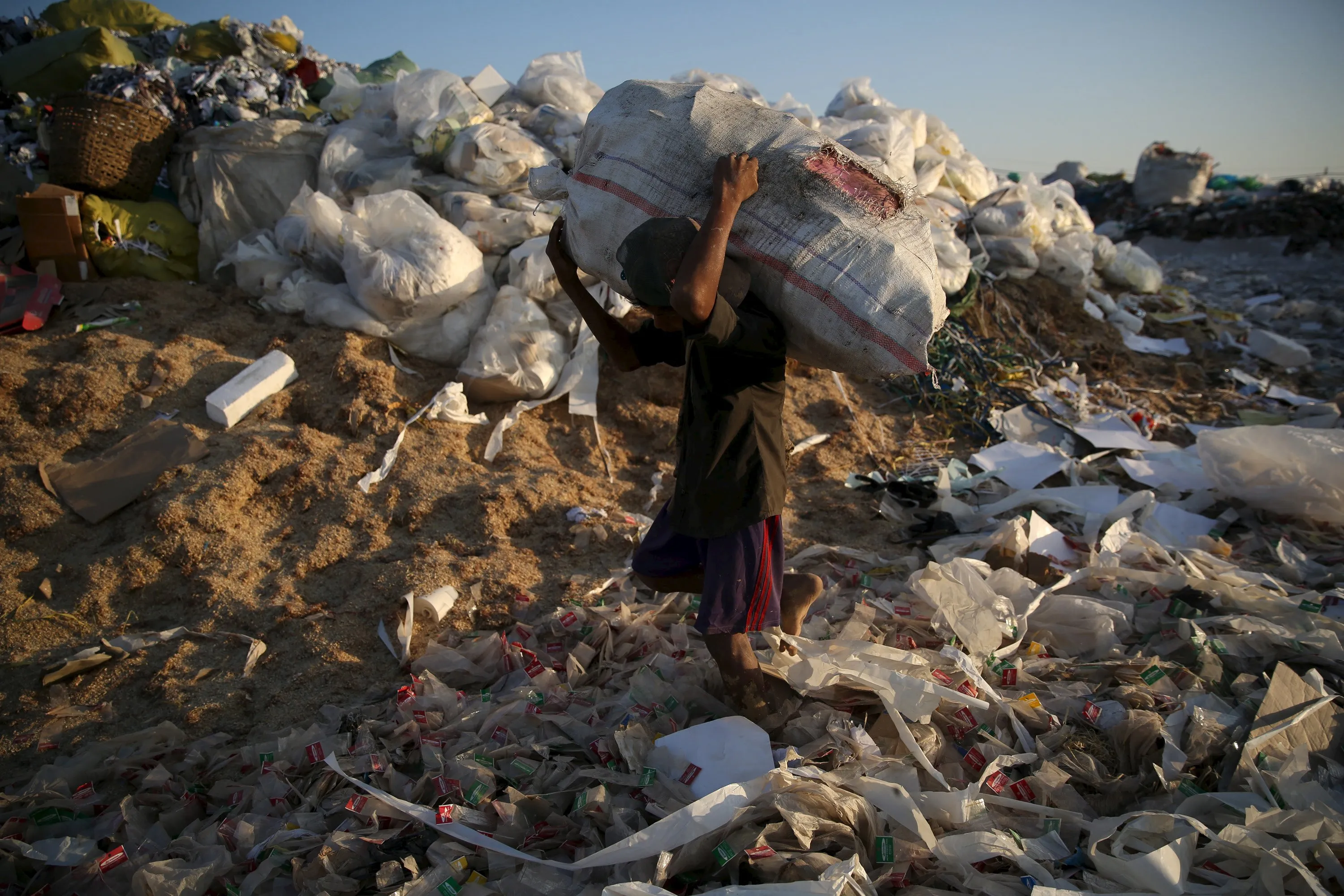 A man carries a bag of recyclable waste at a rubbish dump outside Yangon January 7, 2016. (Photo by Soe Zeya Tun/Reuters)