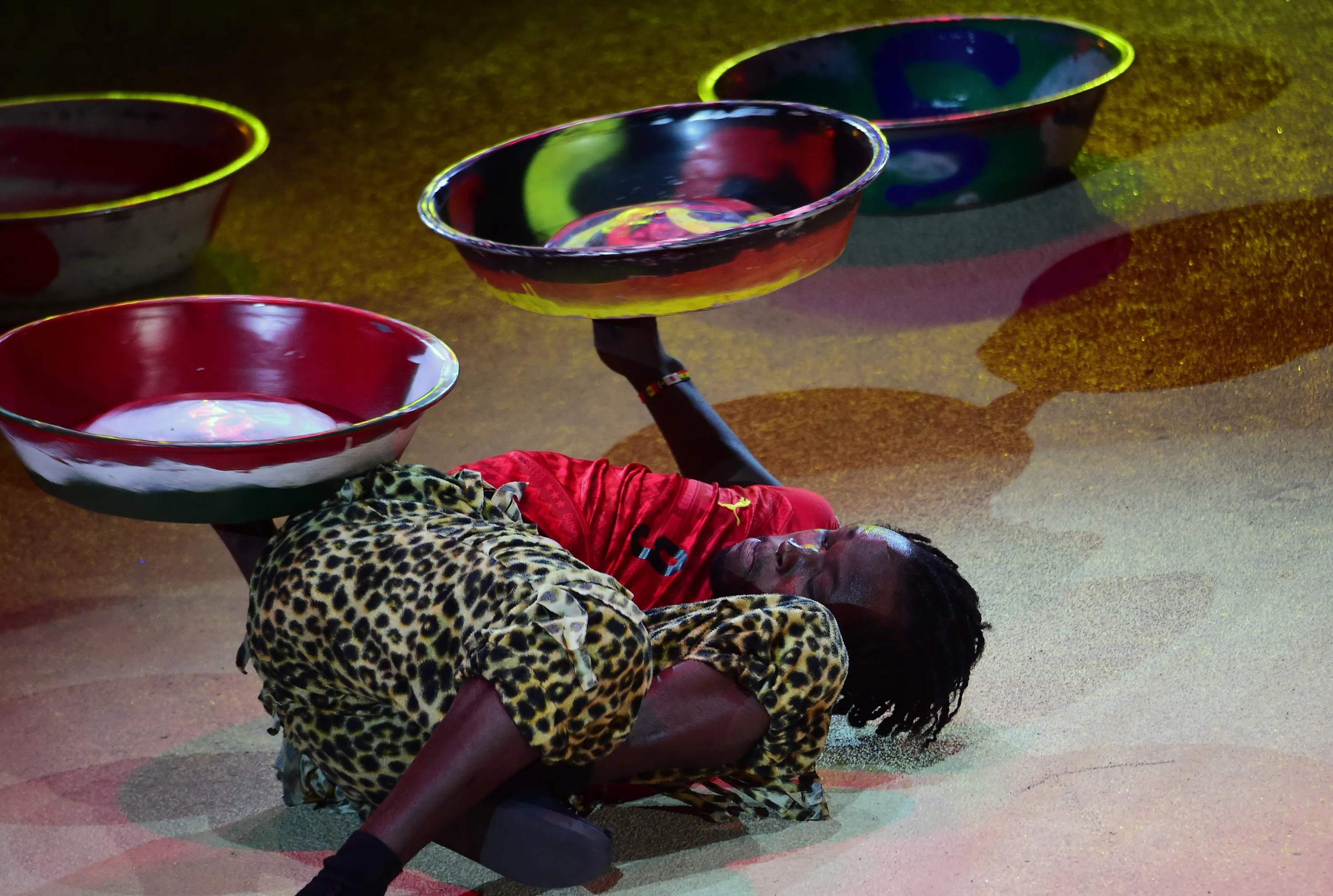 Juggler Isaac Aborah of Ghana performs at the Capital Circus during the 11th edition of the International Circus Festival on January 7, 2016 in Budapest. The festival takes place from January 7 to 11, 2016. (Photo by Attila Kisbenedek/AFP Photo)