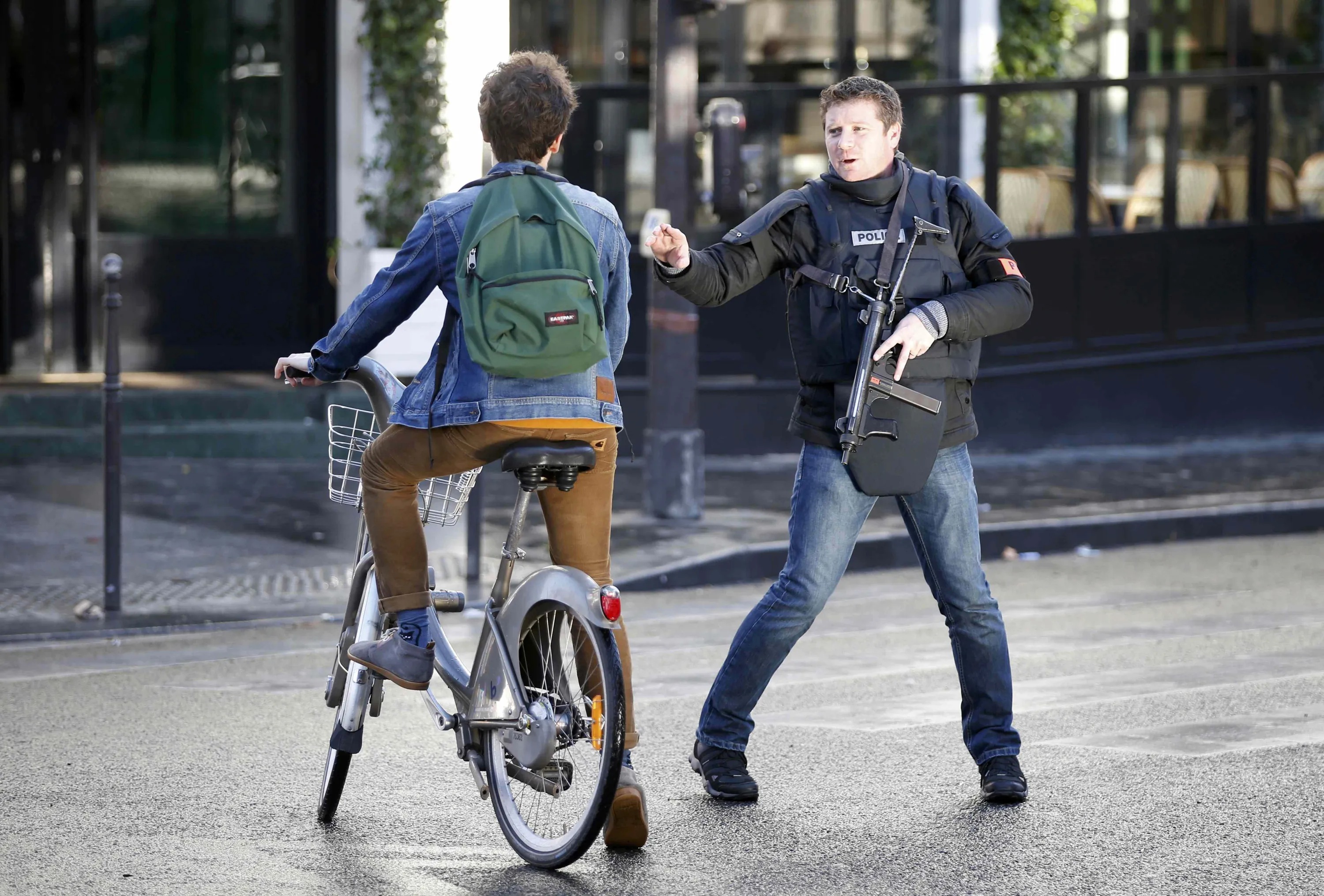 French police secure the area after a man was shot dead at a police station in the 18th district in Paris, France January 7, 2016. Police in Paris on Thursday shot dead a knife-wielding man who tried to enter a police station, police union sources said. The incident took place on the anniversary of last year's deadly Islamist militant attacks on the Charlie Hebdo satirical magazine in the French capital. (Photo by Charles Platiau/Reuters)