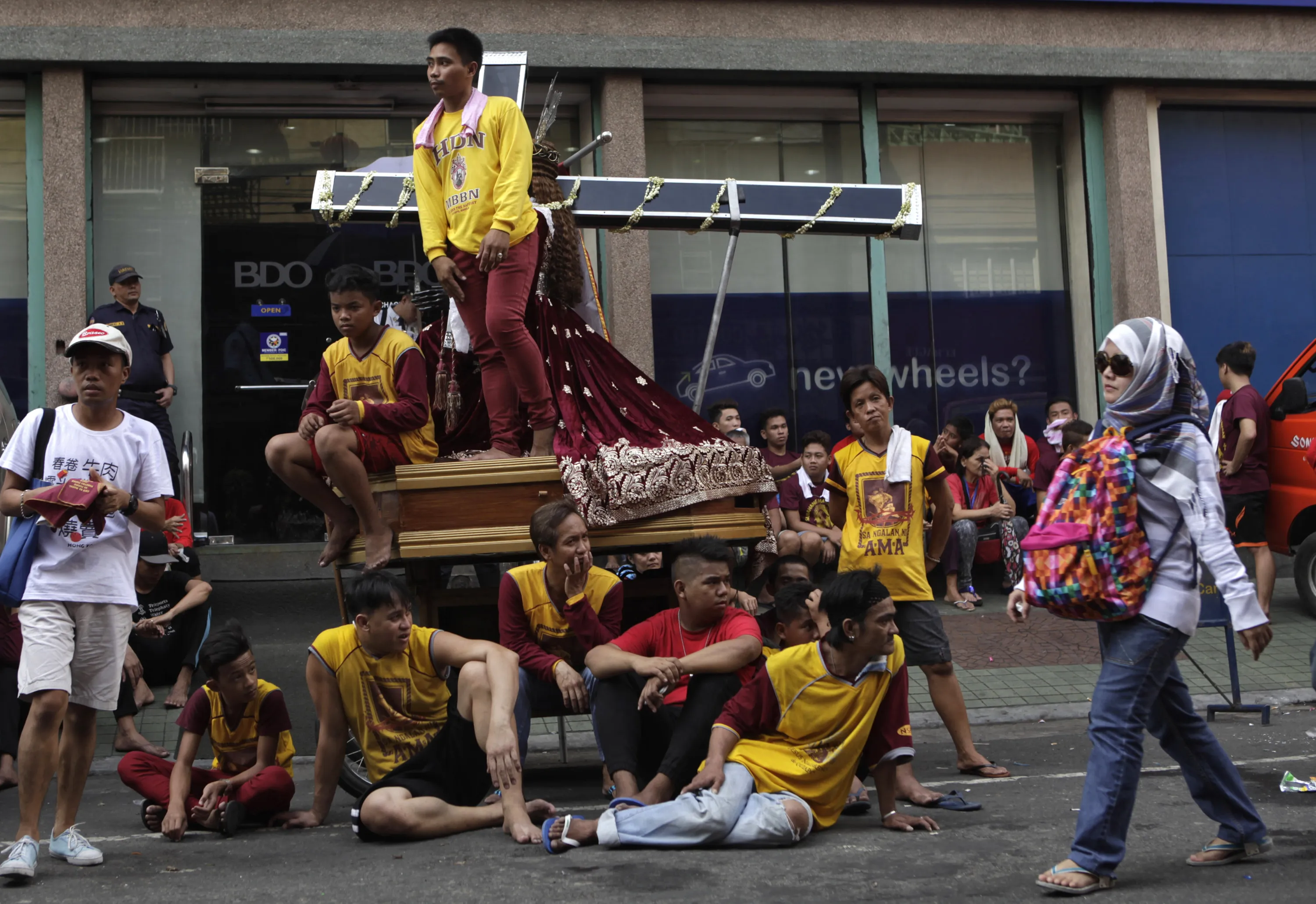 Devotees wait for the start of a procession of Black Nazarene replicas two days before the annual parade of the Black Nazarene in Manila, Philippines January 7, 2016. (Photo by Janis Alano/Reuters)