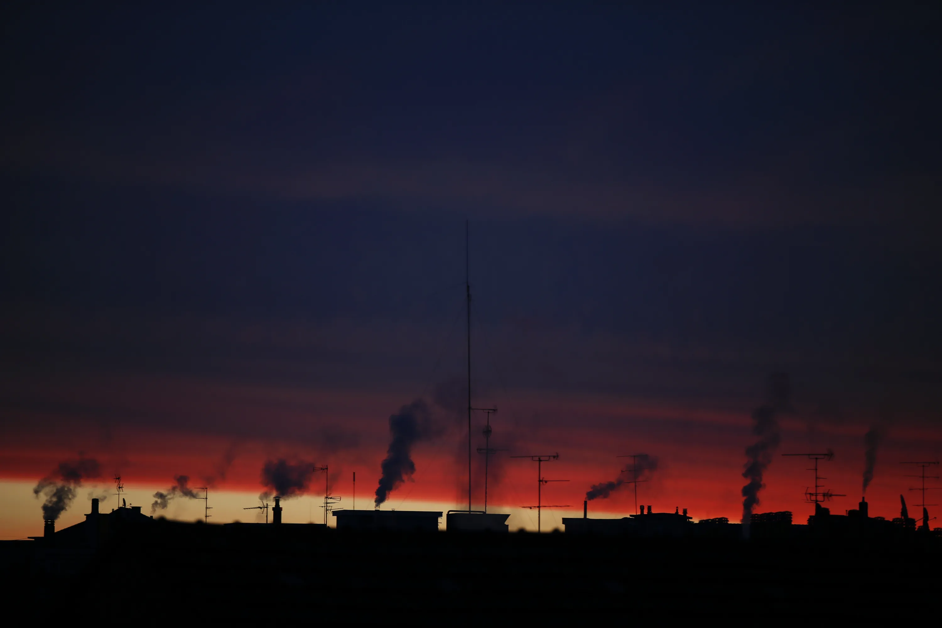 Plumes of smoke billow from some silhouetted chimneys part of the Milan skyline at dawn, Italy,Thursday, January 7, 2016. (Photo by Luca Bruno/AP Photo)