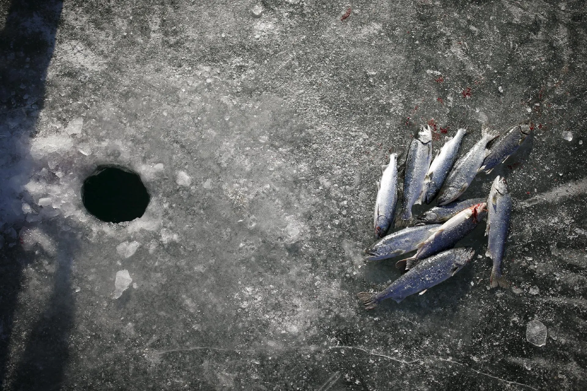 Trout lie on a frozen river in Hwacheon, south of the demilitarized zone (DMZ) separating the two Koreas, January 9, 2016. (Photo by Kim Hong-Ji/Reuters)