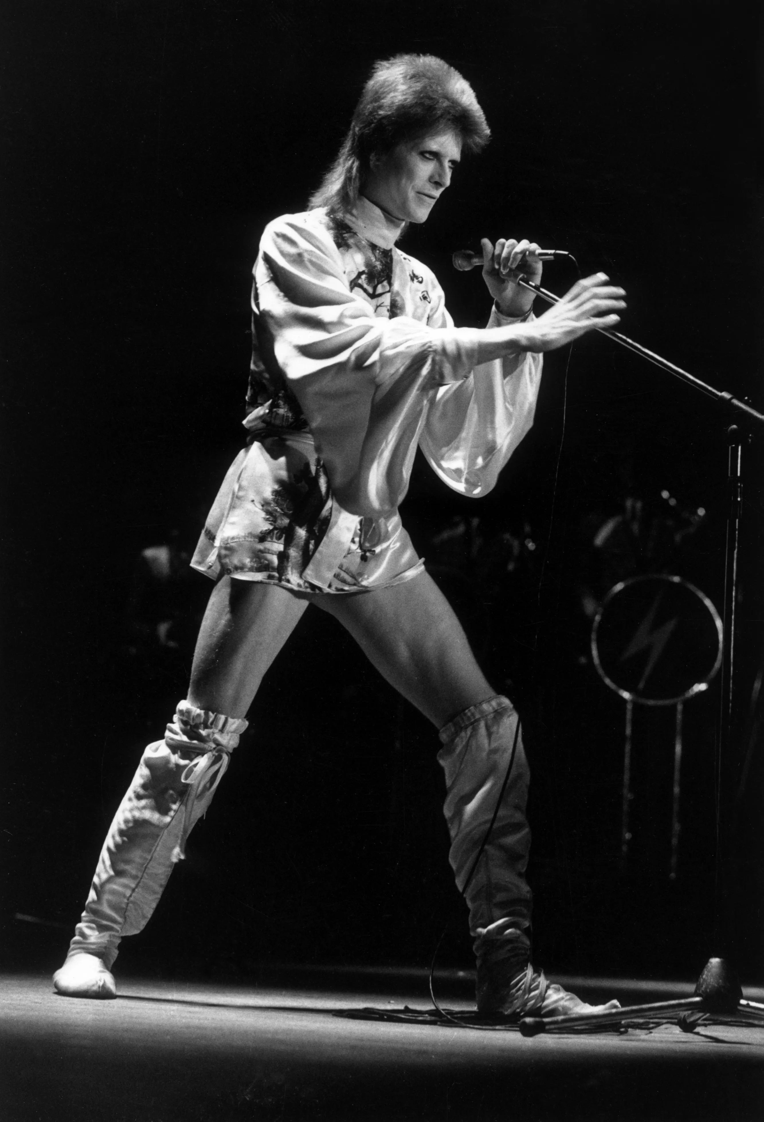 3rd July 1973: David Bowie on stage at the Hammersmith Odeon in London at the last of the Ziggy Stardust concerts. (Photo by Steve Wood/Express/Getty Images)