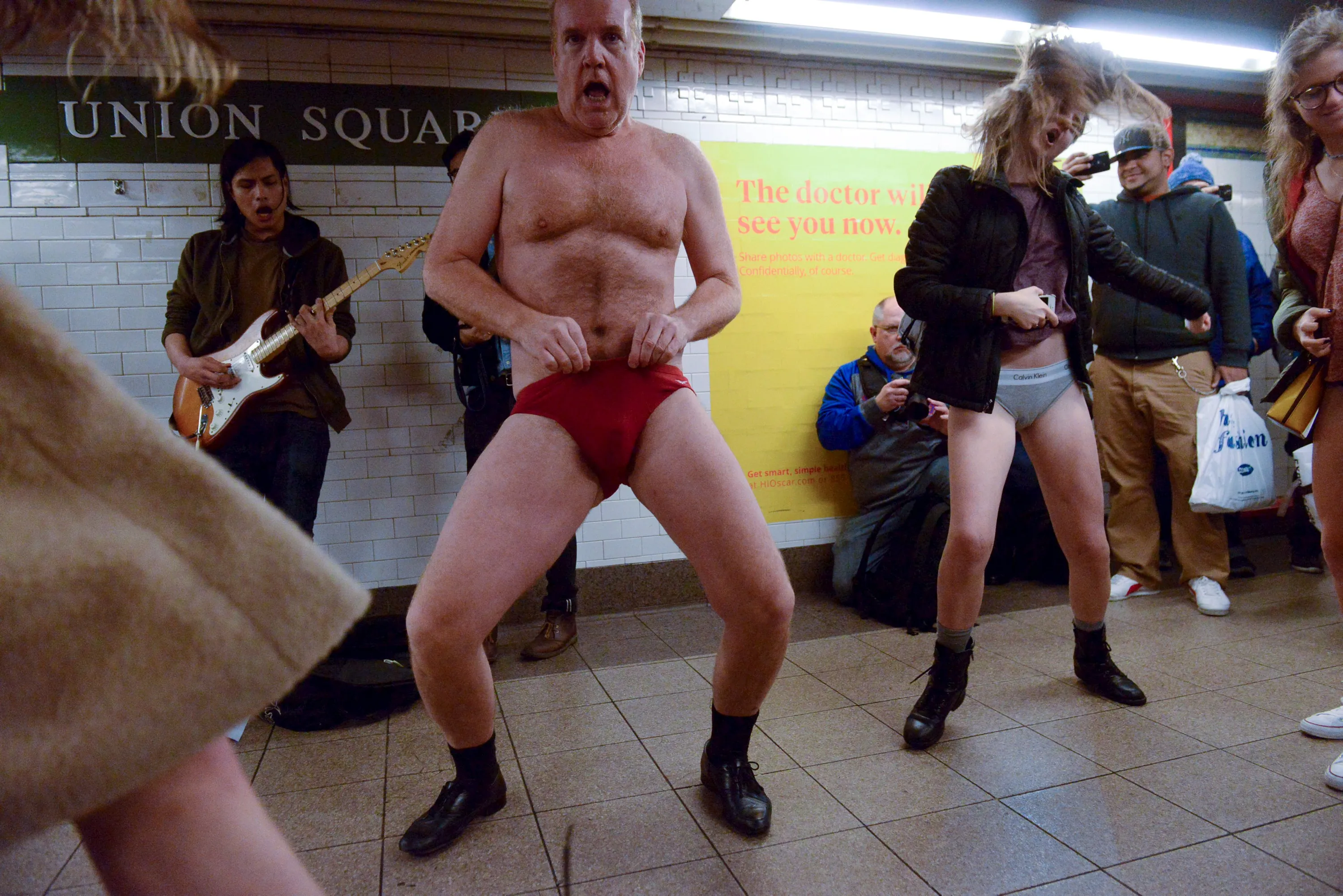 People with no pants dance at the Union Square subway station during the annual No Pants Subway Ride in New York, January 10, 2016. (Photo by Stephanie Keith/Reuters)