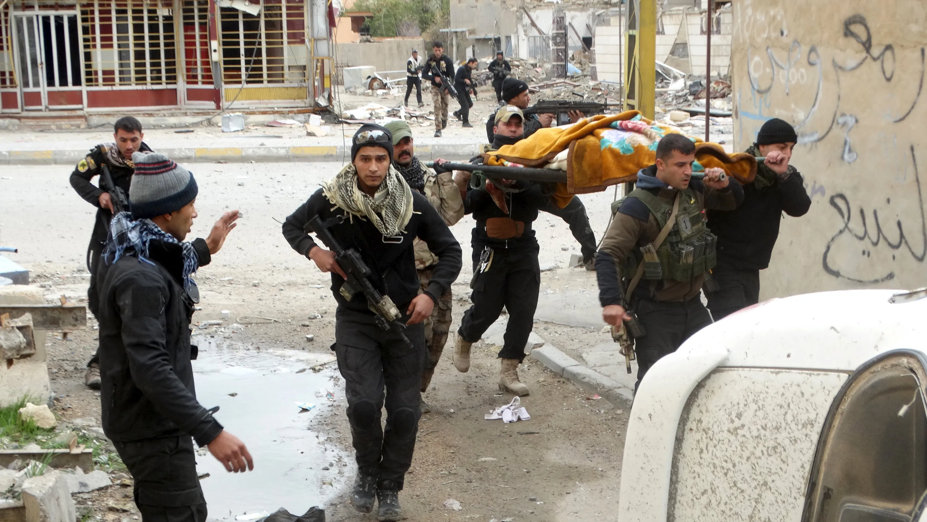 Iraqi security forces and pro-government Sunni tribal fighters carry the body of a woman killed in Ramadi city, Iraq January 4, 2016. (Photo by Reuters/Stringer)