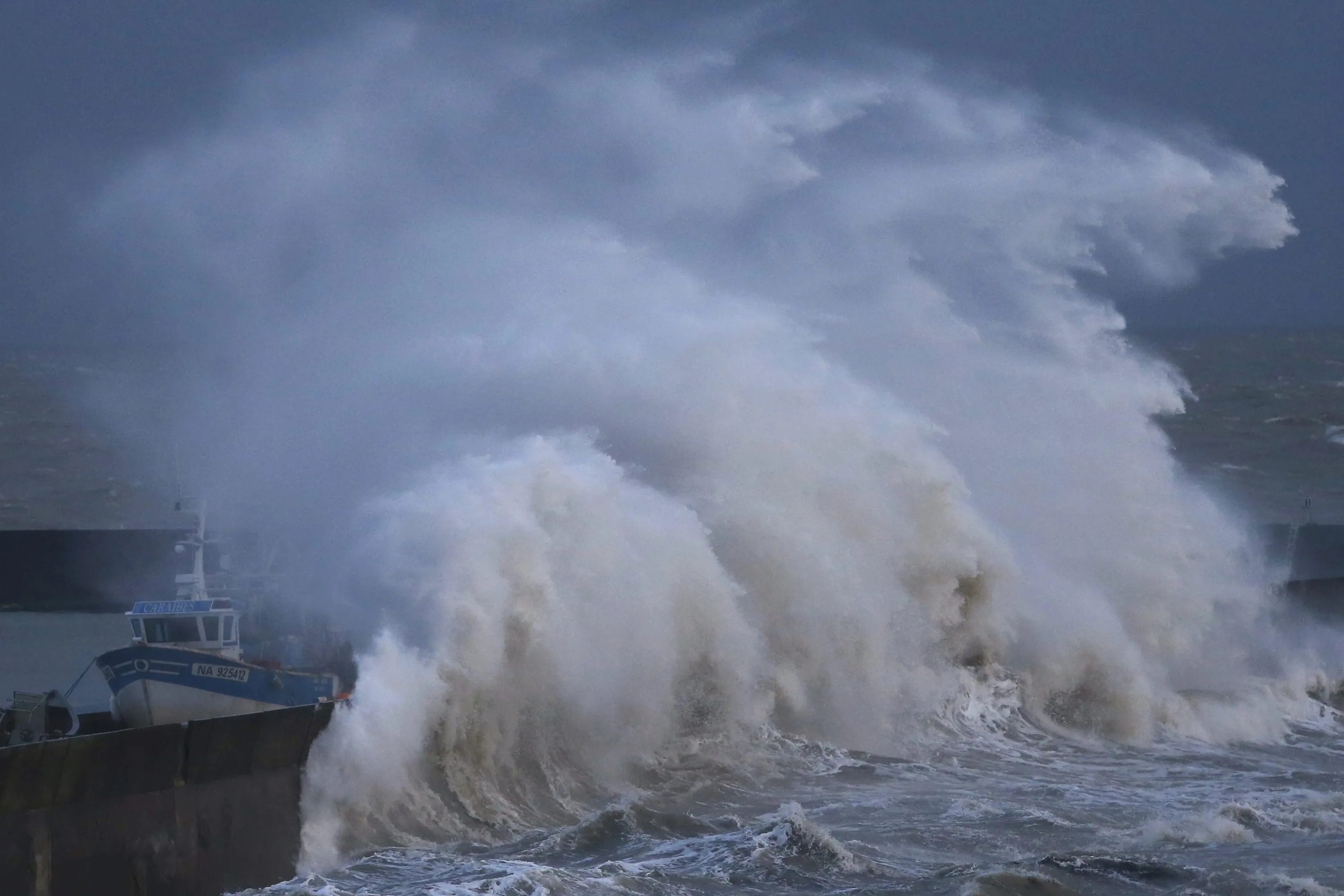 A high wave crashes on the protecting wall at the fishing harbour in Pornic, France as stormy weather with high winds hits the French Atlanitic coast January 11, 2016. (Photo by Stephane Mahe/Reuters)