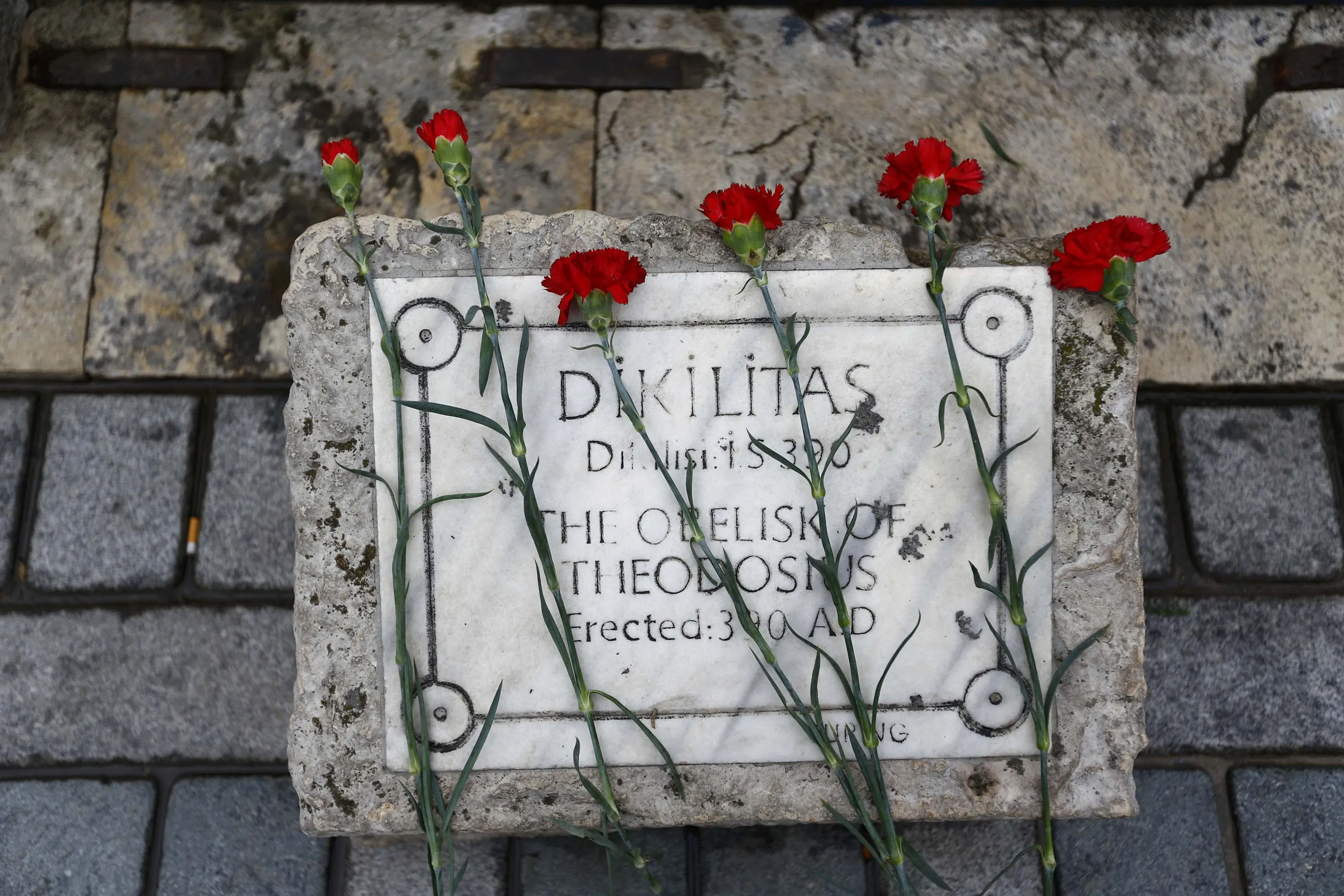 Red carnations are placed at the Obelisk of Theodosius, the scene of yesterday's suicide bomb attack at Sultanahmet square in Istanbul, Turkey January 13, 2016. (Photo by Murad Sezer/Reuters)