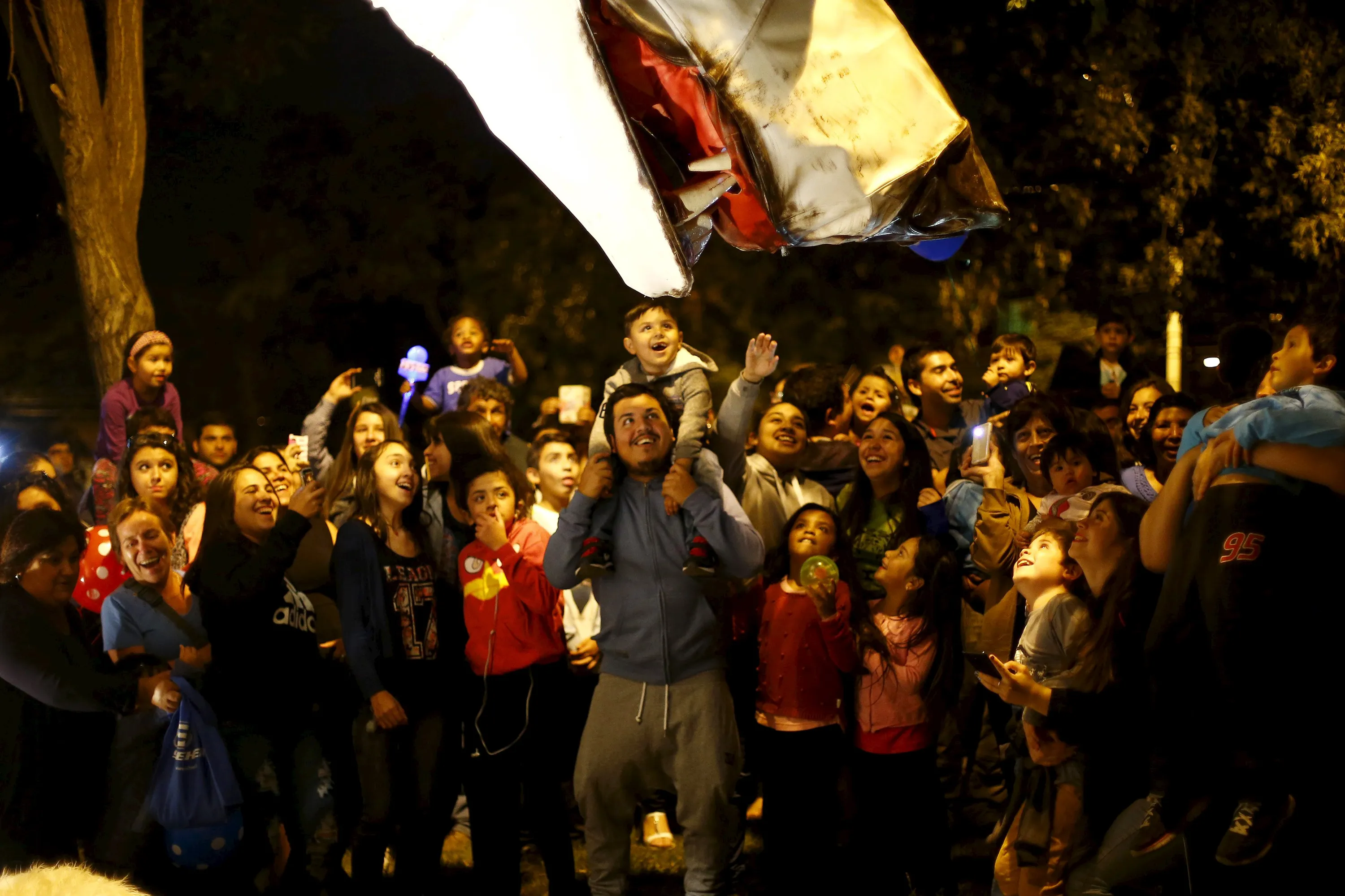 People gather as members of street theater company Sarruga perform "Arktika" during the "Santiago a Mil" International Theatre Festival in Santiago, Chile, January 12, 2016. (Photo by Ivan Alvarado/Reuters)