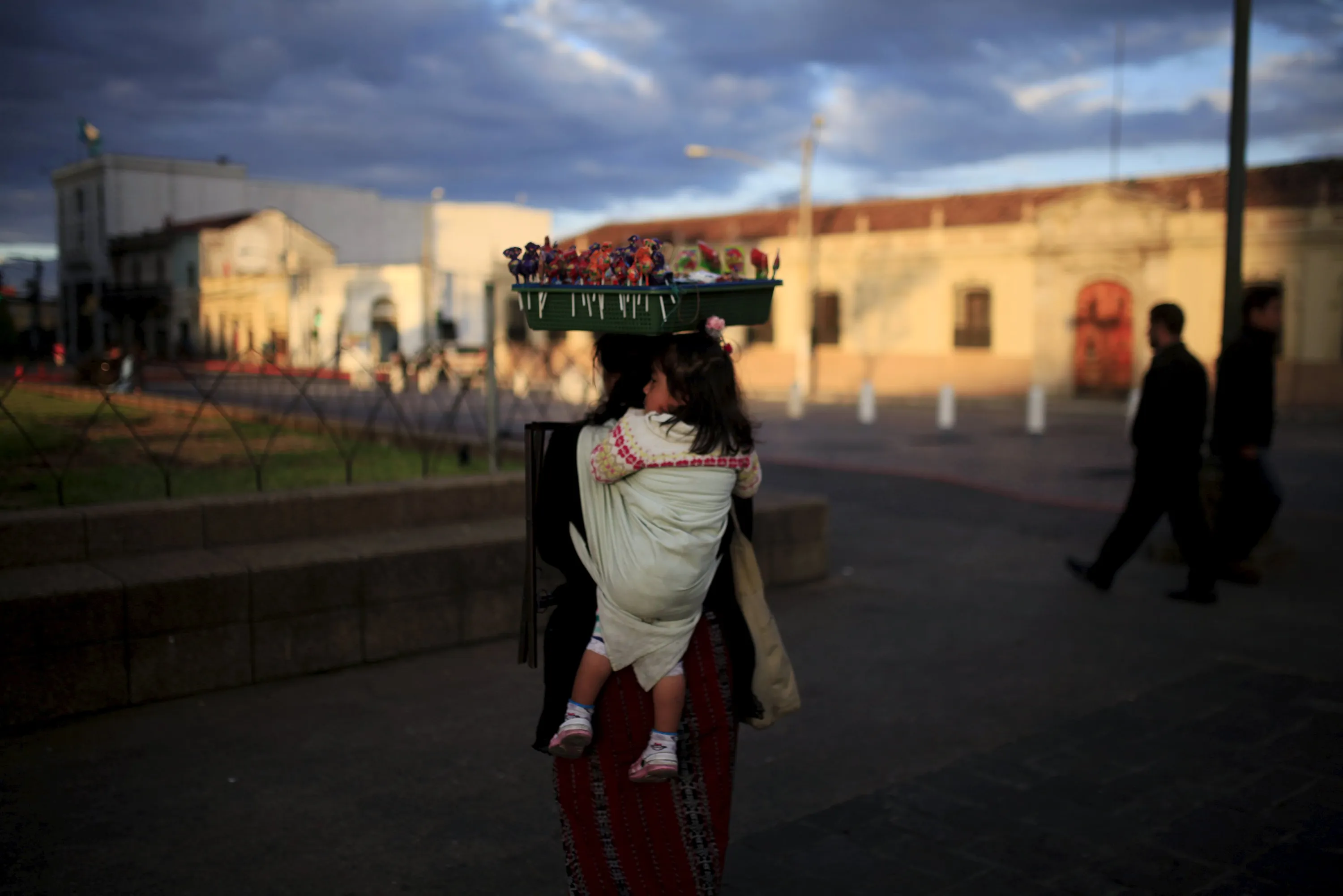 A woman carries her daughter as she sells candies at the Constitution Square in downtown Guatemala City, Guatemala, January 13, 2016 prior to the inauguration of Guatemala's President-elect Jimmy Morales. (Photo by Jose Cabezas/Reuters)