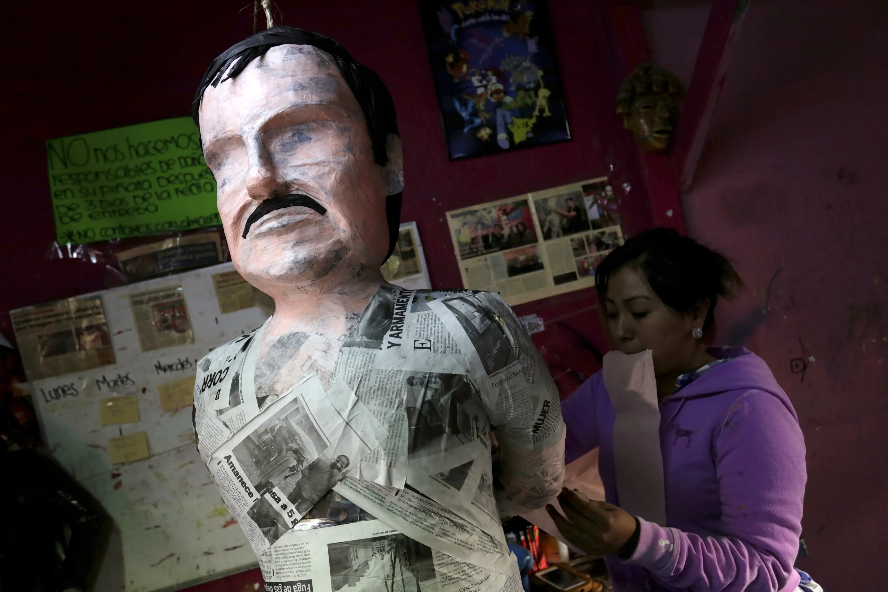 An artisan works on a pinata depicting the drug lord Joaquin "El Chapo" Guzman at a workshop in Reynosa, in Tamaulipas state, Mexico, January 13, 2016. (Photo by Daniel Becerril/Reuters)