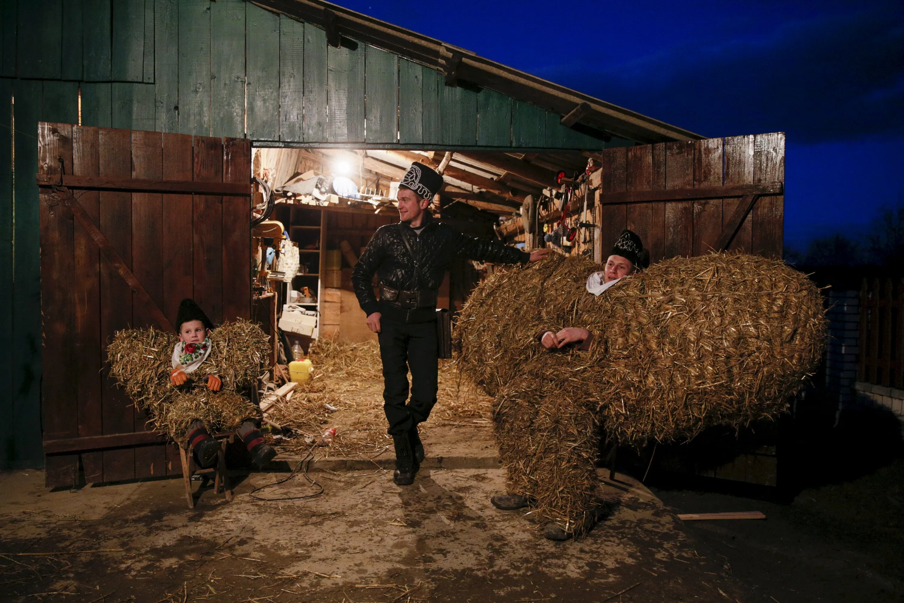 Local residents, dressed in costumes, gather before the celebrations for Malanka holiday in the village of Krasnoilsk in Chernivtsi region, Ukraine, January 13, 2016. (Photo by Valentyn Ogirenko/Reuters)