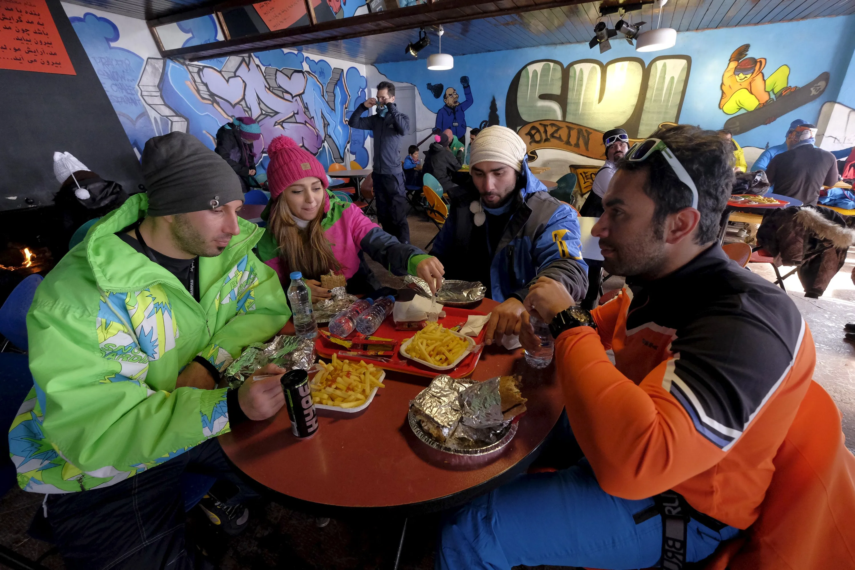 Iranian skiers have meals in a restaurant at the Dizin ski resort, northwest of Tehran January 15, 2016. (Photo by Raheb Homavandi/Reuters/TIMA)
