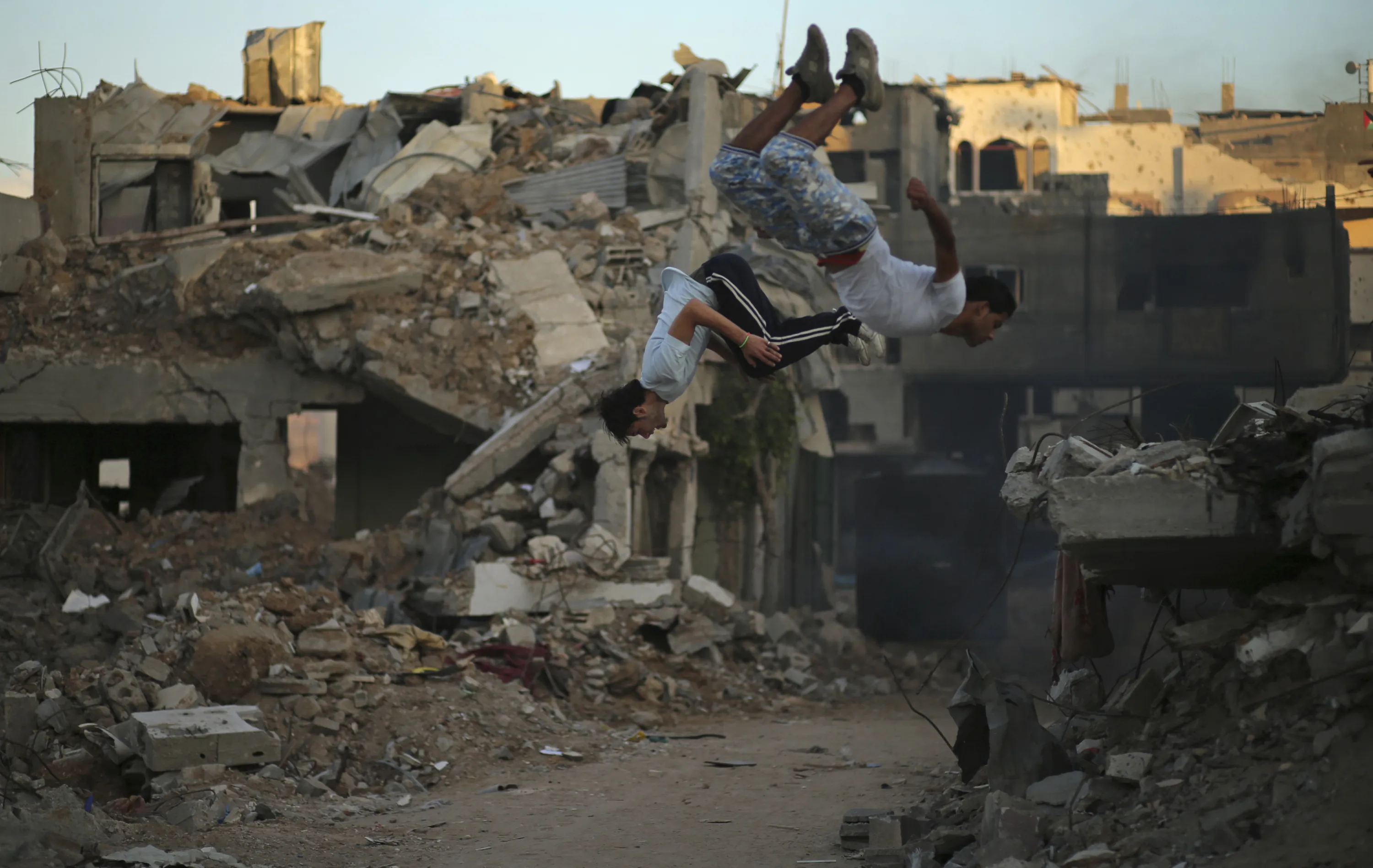 Palestinian youths practise their Parkour skills near the ruins of houses, which witnesses said were destroyed during a seven-week Israeli offensive, in the Shejaia neighborhood east of Gaza City, October 1, 2014. (Photo by Mohammed Salem/Reuters)