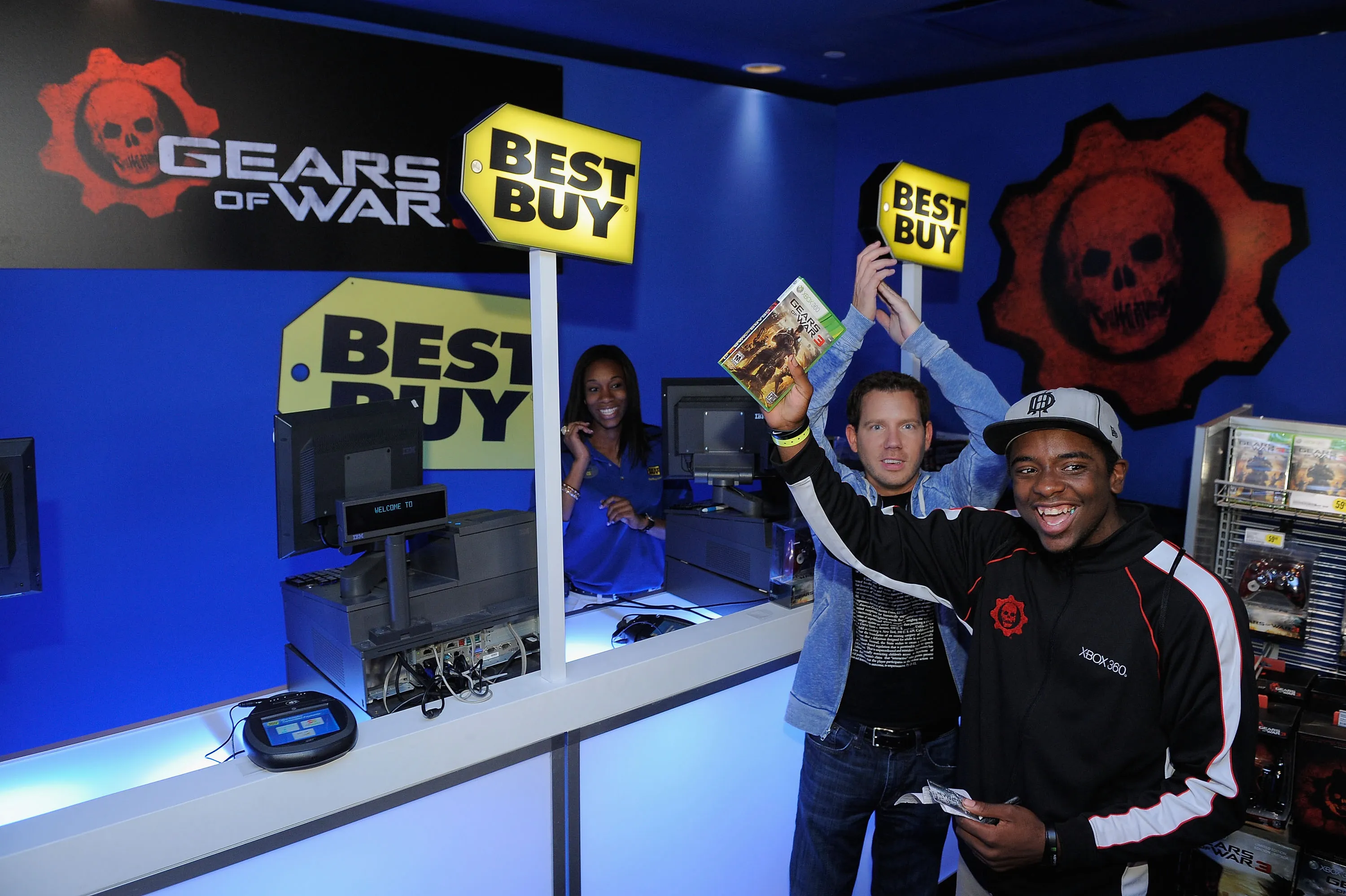 NEW YORK - SEPTEMBER 19: Fans wait in line to be the first to purchase 'Gears of War 3' for Xbox 360, released at midnight at the Best Buy Theater in New York's Times Square, on September 19, 2011 in New York City. (Photo by Jemal Countess/Getty Images for Xbox)