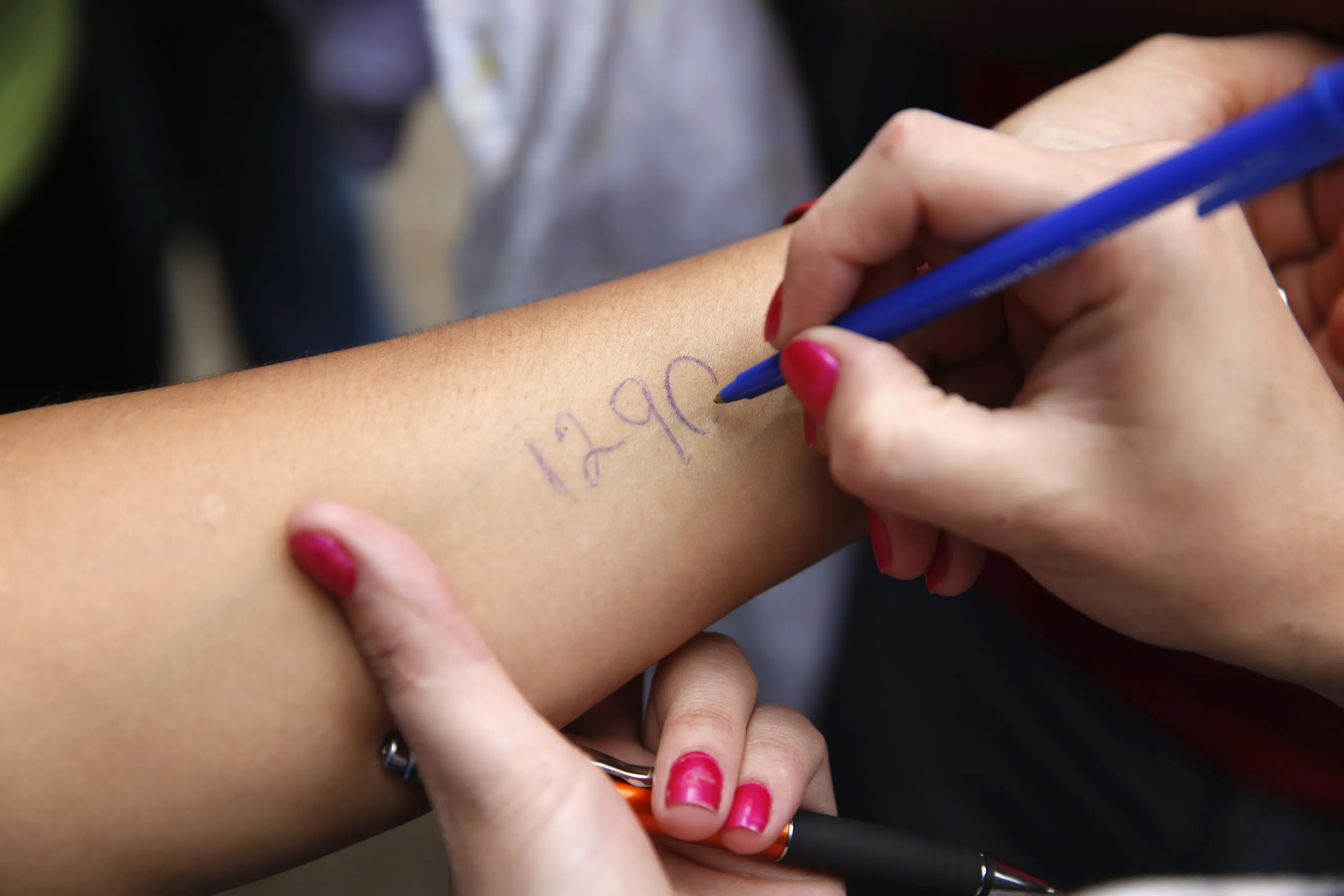 People write queue numbers on their arms, to mark their position as they wait in line to buy food at a supermarket in San Cristobal, about 410 miles (660 km) southwest of Caracas, February 28, 2014. (Photo by Carlos Garcia Rawlins/Reuters)