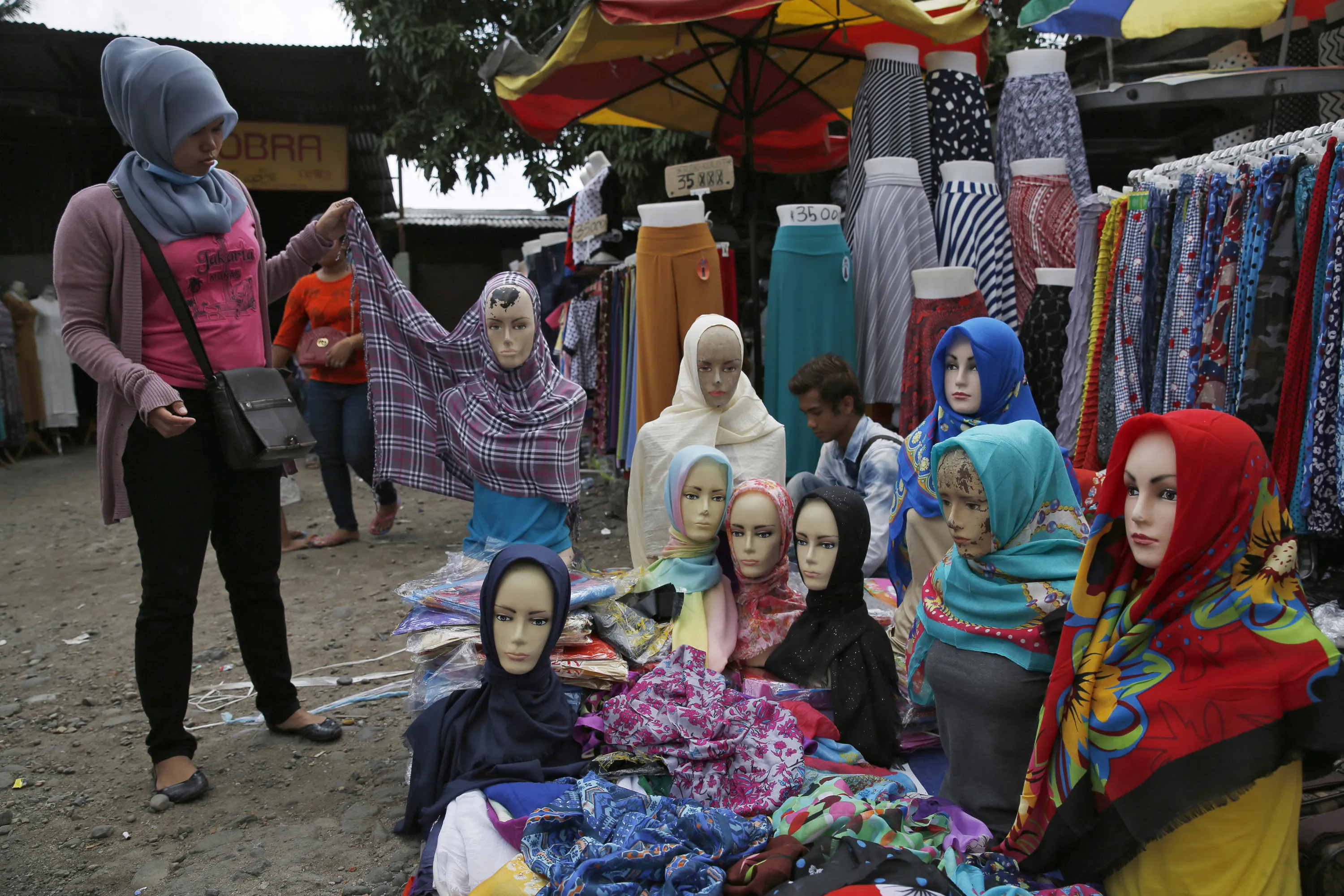 A customer holds a hijab at a stall, at the Tanah Abang textile market in Jakarta, Indonesia January 13, 2016. Indonesia's central bank is expected to cut its key policy rate on Thursday to boost growth after saying since October that it sees room to loosen monetary policy. (Photo by Reuters/Beawiharta)