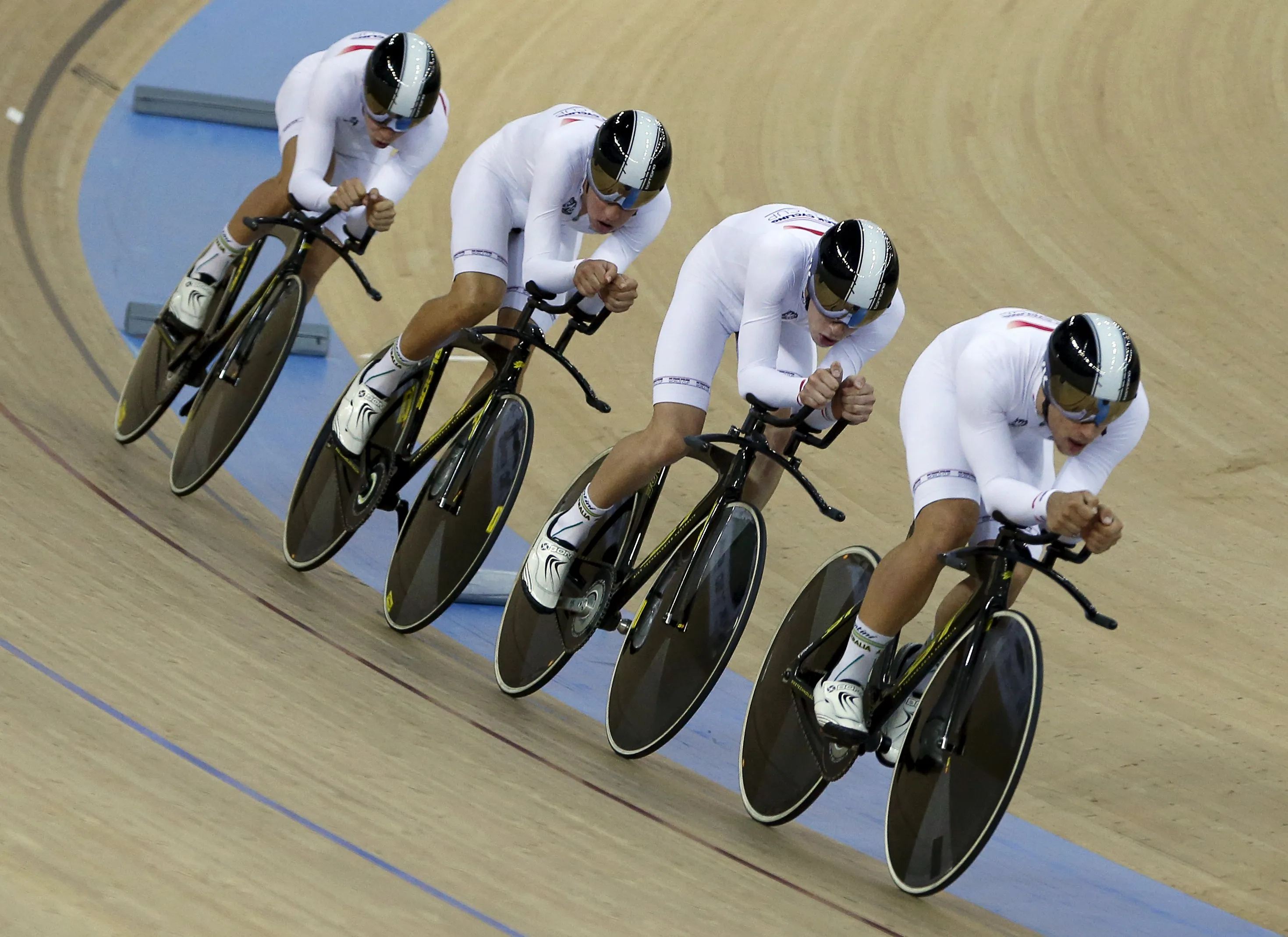 “Riders of Australia compete to win – gold in Men's Team Pursuit during the UCI Track Cycling World Cup in Hong Kong, China January 16, 2016”. (Photo by Bobby Yip/Reuters)