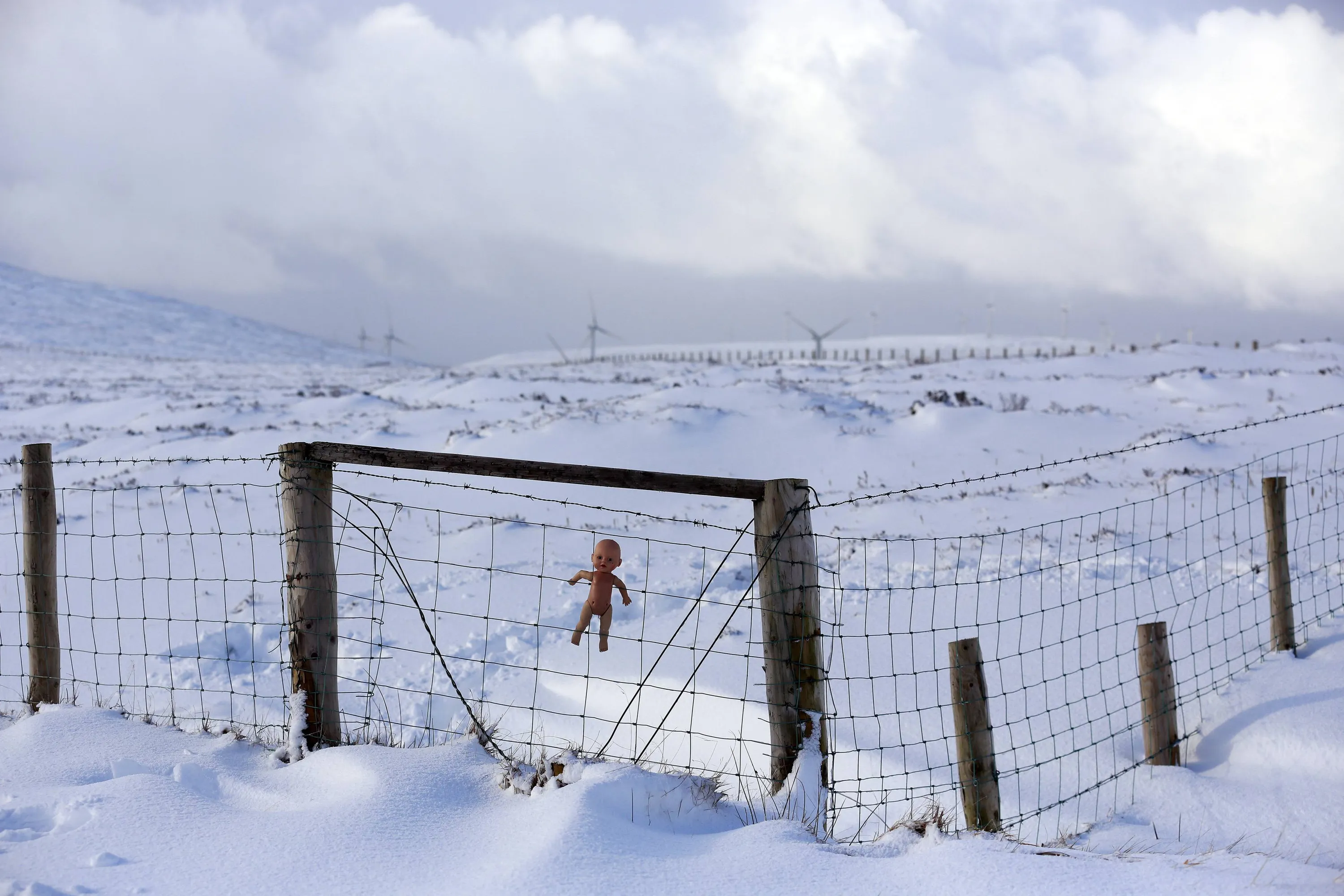 A child's doll is placed on a fence near an illegal dump on Slieve na Orra mountain near the village of Cargan after heavy snow led to traffic disruptions and the closure of schools across Northern Ireland January 29, 2015. (Photo by Cathal McNaughton/Reuters)