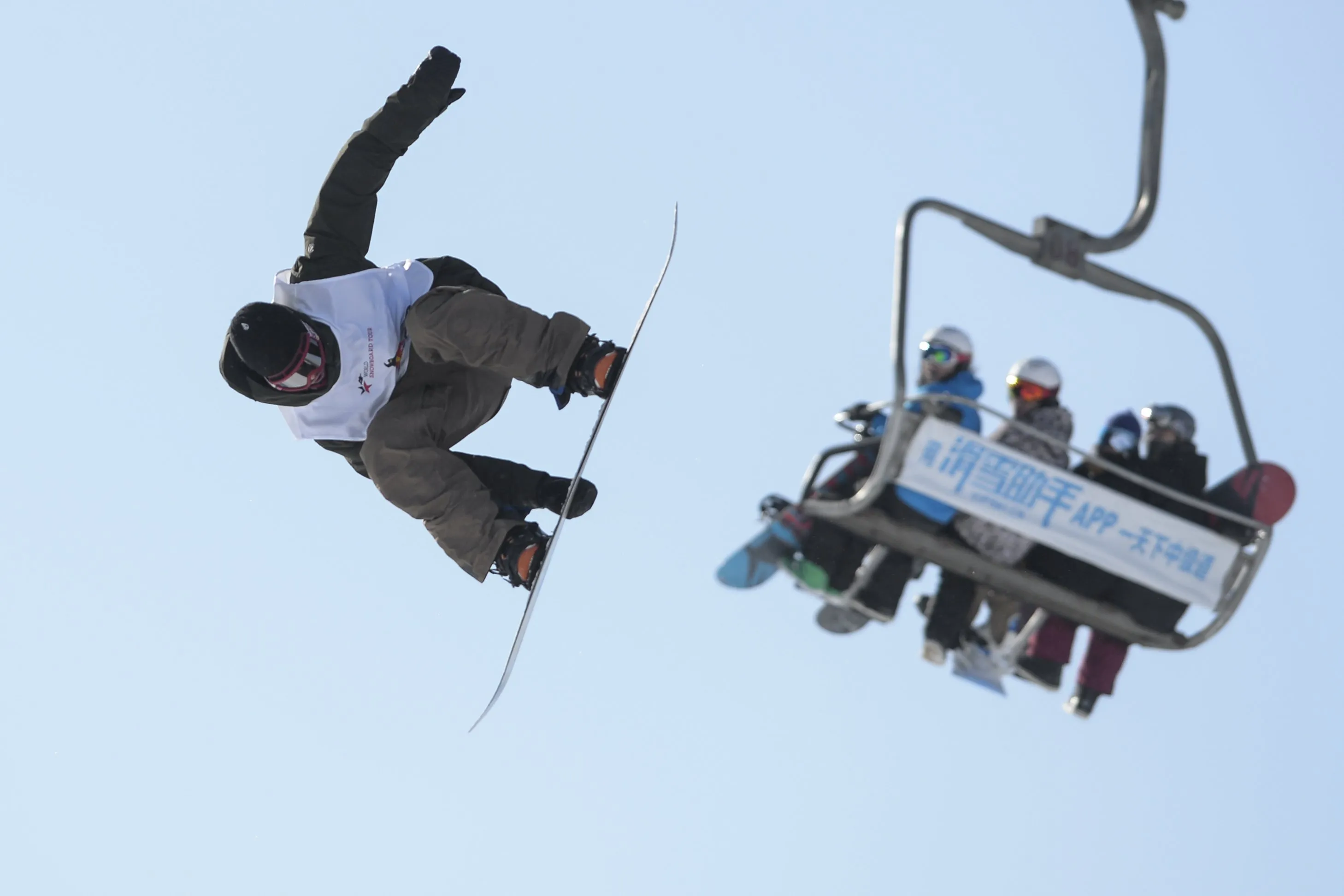 A snowboarding contestant takes a jump during a competition in Beijing, China, January 17, 2016. (Photo by Reuters/China Daily)