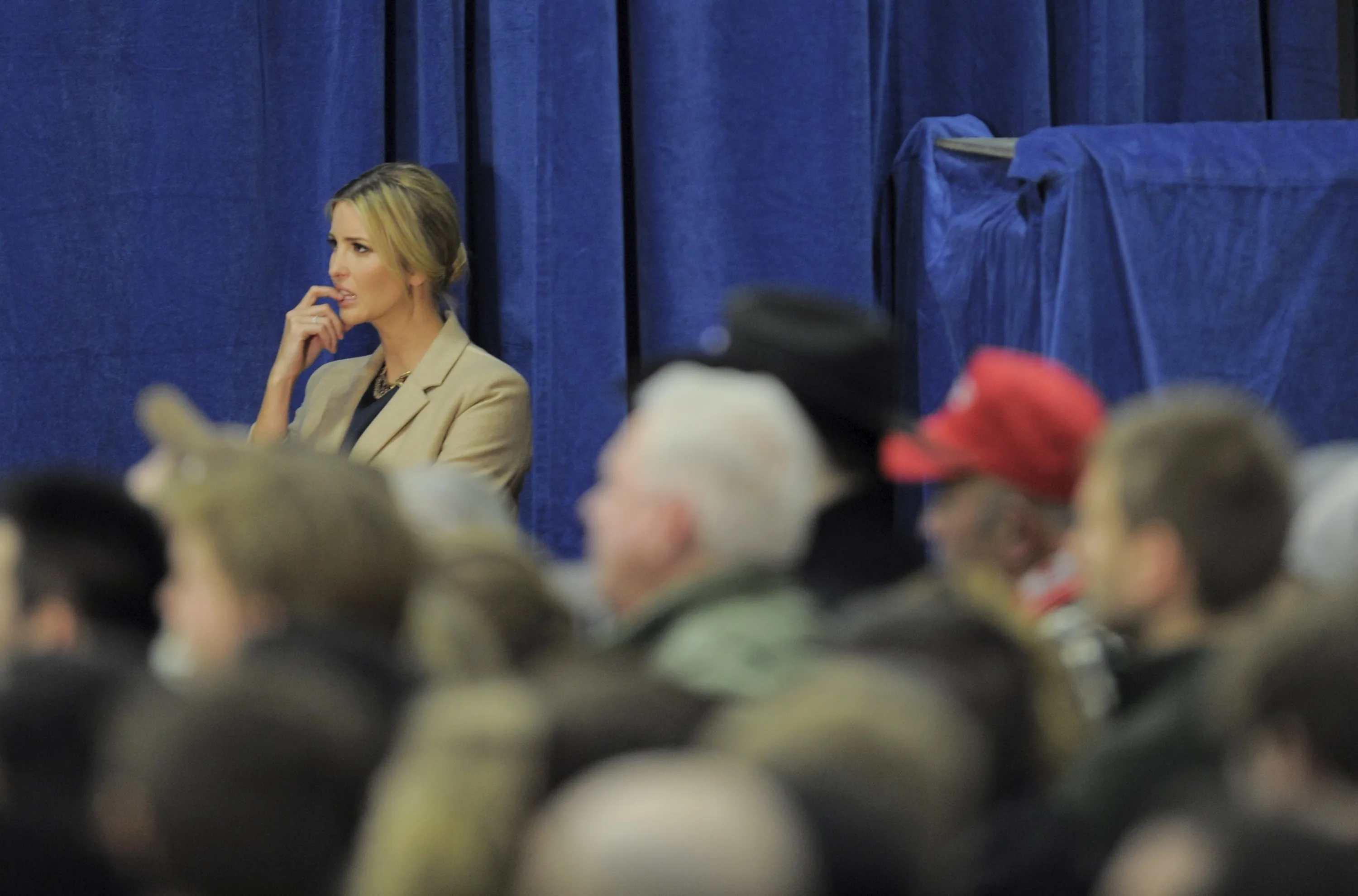 Ivanka Trump, daughter of U.S. Republican presidential candidate Donald Trump listens to her father at a campaign rally in Concord, New Hampshire January 18, 2016. (Photo by Gretchen Ertl/Reuters)