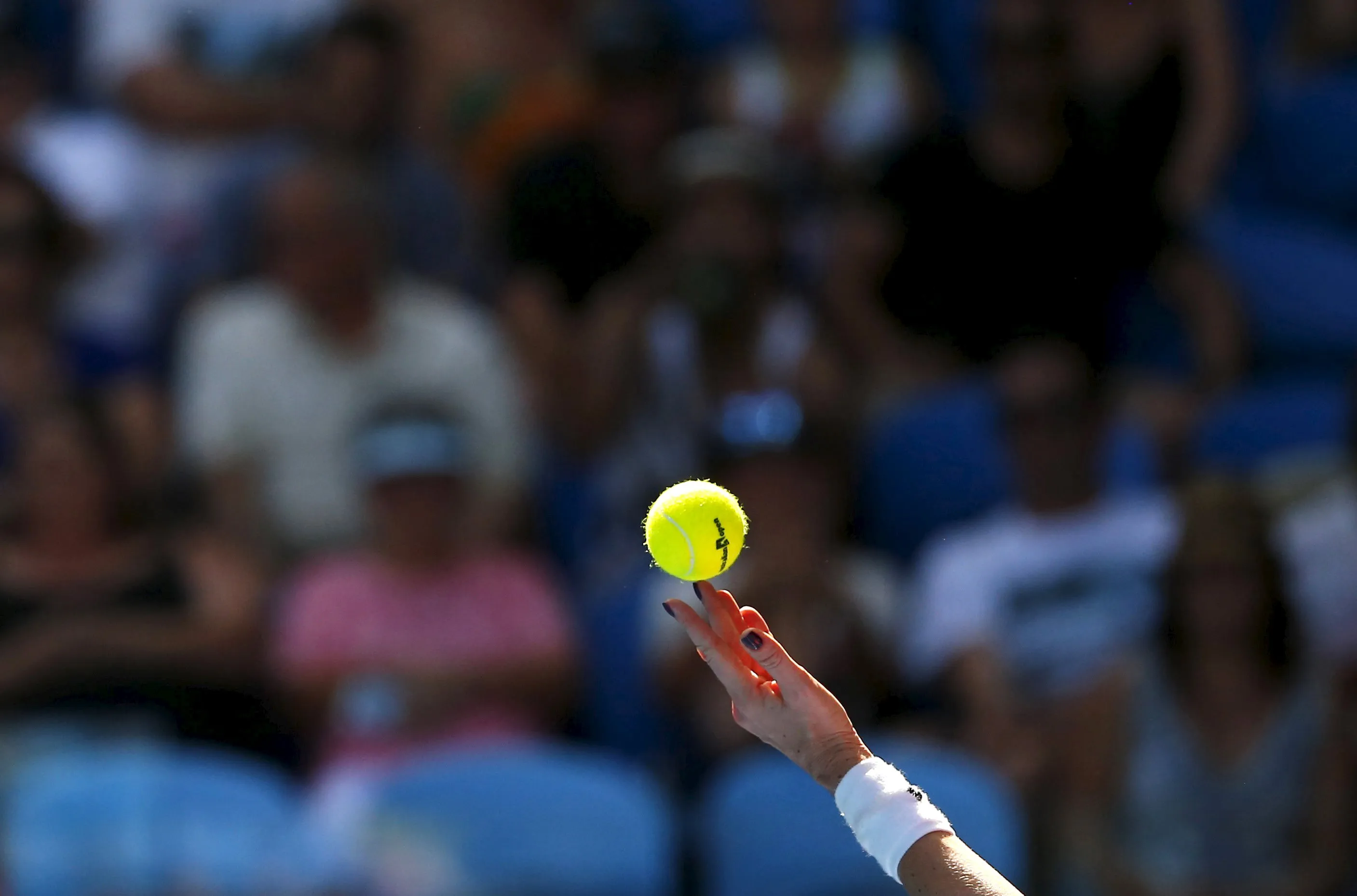 A player prepares to serve at the Australian Open tennis tournament at Melbourne Park, Australia, January 18, 2016. World tennis was rocked on Monday by allegations that the game's authorities have failed to deal with widespread match-fixing, just as the Australian Open, the first Grand Slam tournament of the year, kicked off in Melbourne. (Photo by Thomas Peter/Reuters)