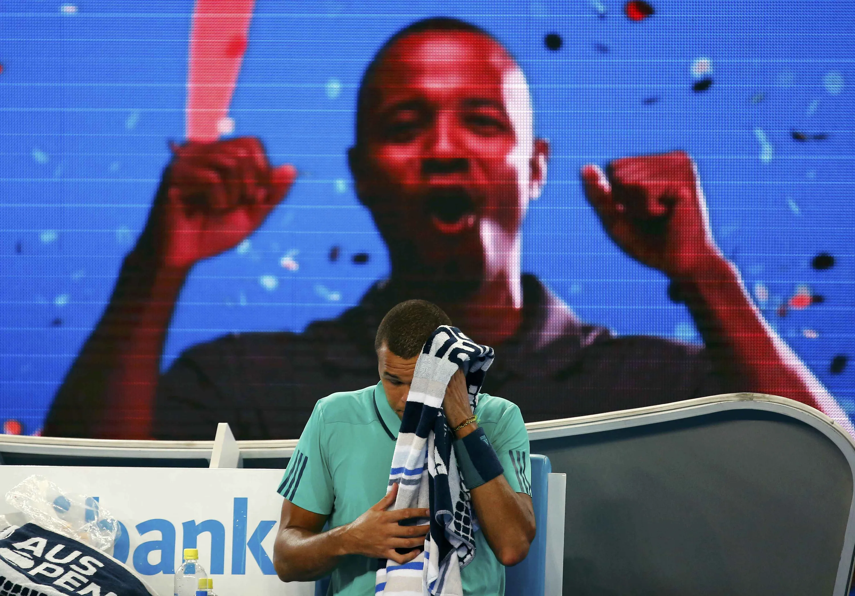 An electronic billboard displays an advertisement behind France's Jo-Wilfried Tsonga during his first round match against Cyprus' Marcos Baghdatis at the Australian Open tennis tournament at Melbourne Park, Australia, January 18, 2016. (Photo by Thomas Peter/Reuters)