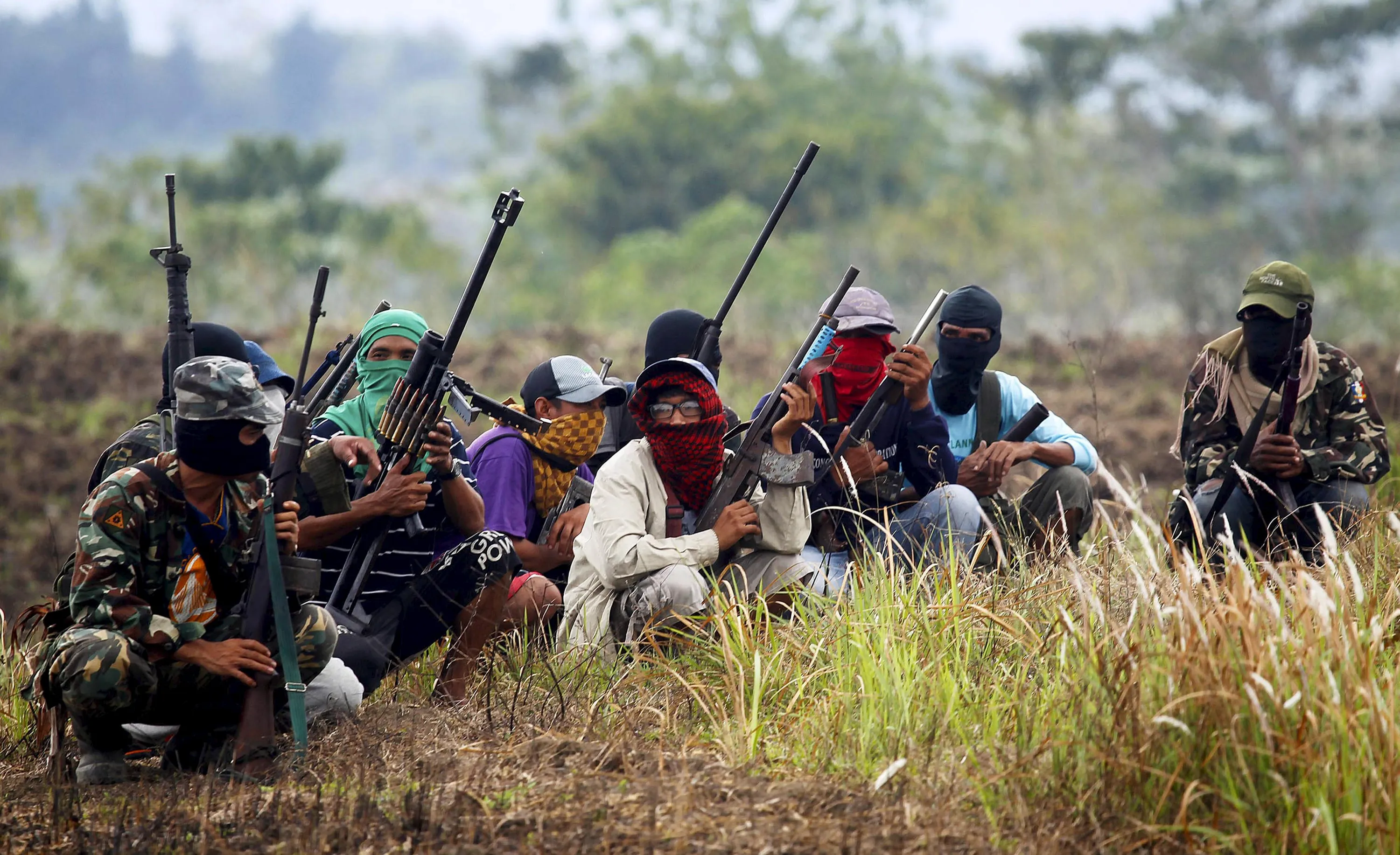 A Christian armed vigilante group which called themselves “Red God’s Defenders” hold their weapons as they appear to the media for the first time in their mountain hideout in central Mindanao in southern Philippines, January 19, 2016. The group burned a black flag similar to one used by Islamic State jihadists, vowing to fight any attempt spread its roots in the Asian country. (Photo by Reuters/Stringer)
