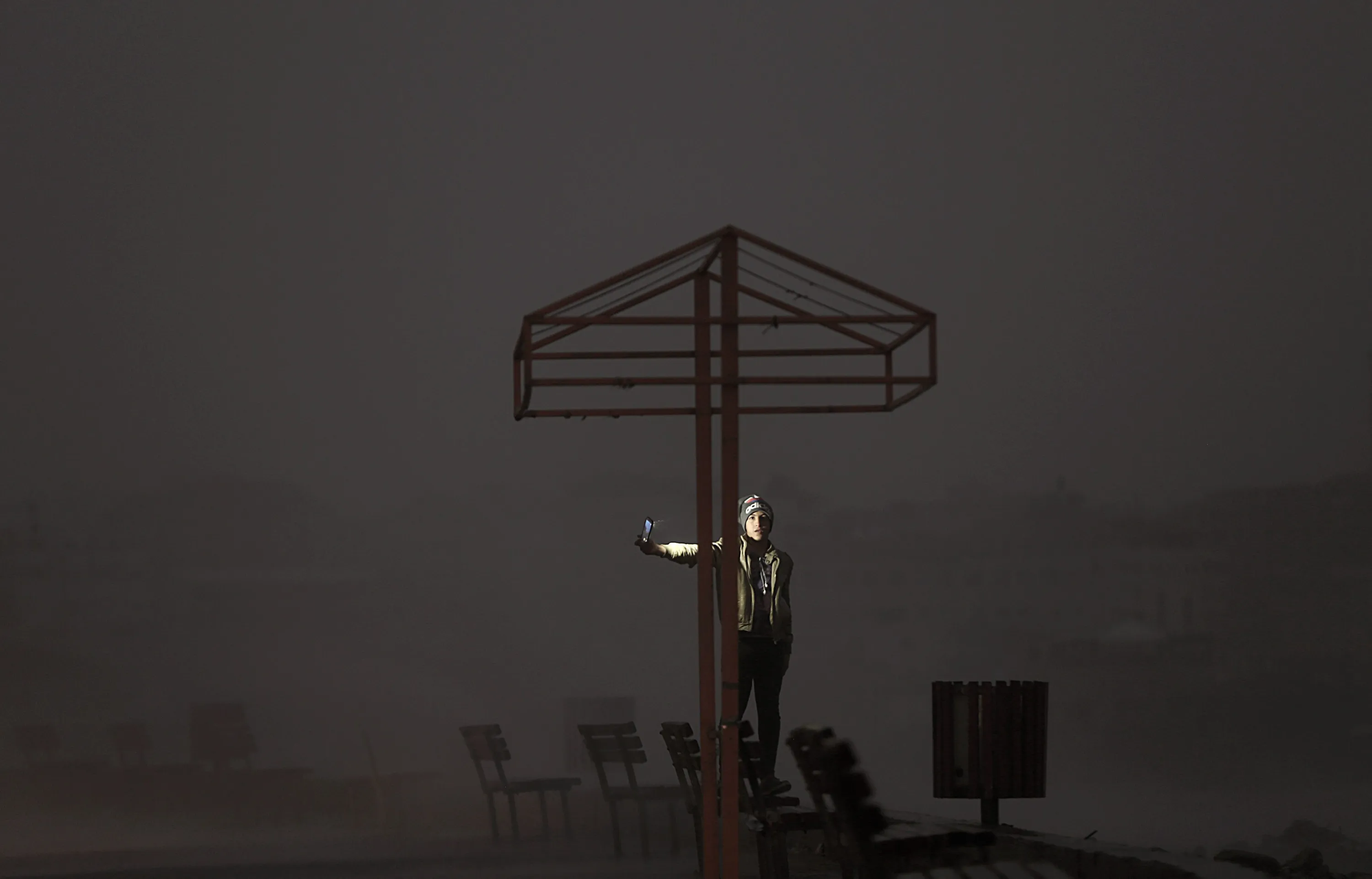 A Palestinian youth takes a selfie at the Gaza port during stormy weather, Gaza Strip, 18 January 2016. (Photo by Mohammed Saber/EPA)