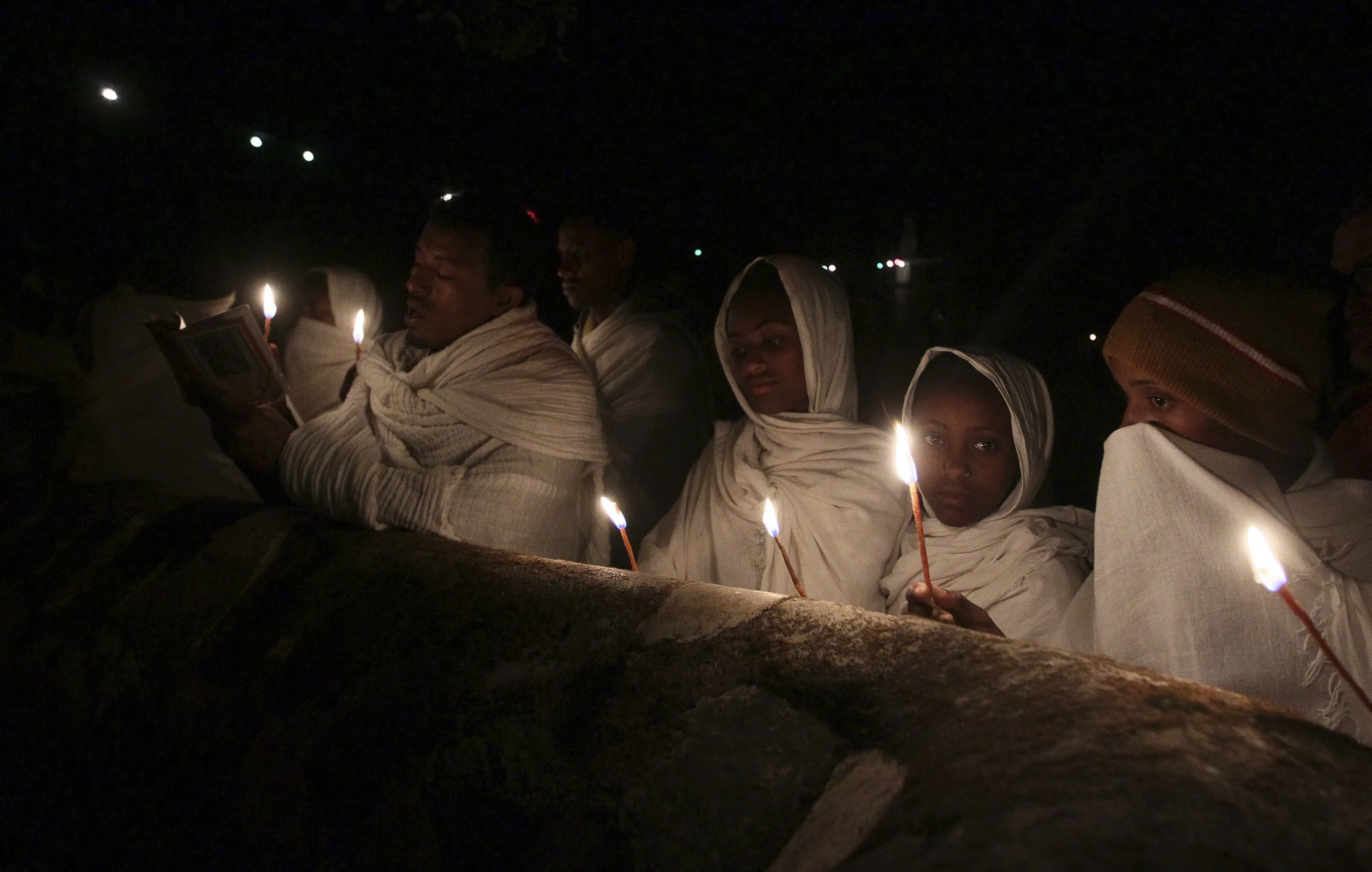 Ethiopian Orthodox faithful hold candles as they attend the eve-prayers during the Timket celebration to commemorate the baptism of Jesus Christ by John the Baptist in the River Jordan, in Gondar, Ethiopia, January 20 2016. (Photo by Tiksa Negeri/Reuters)
