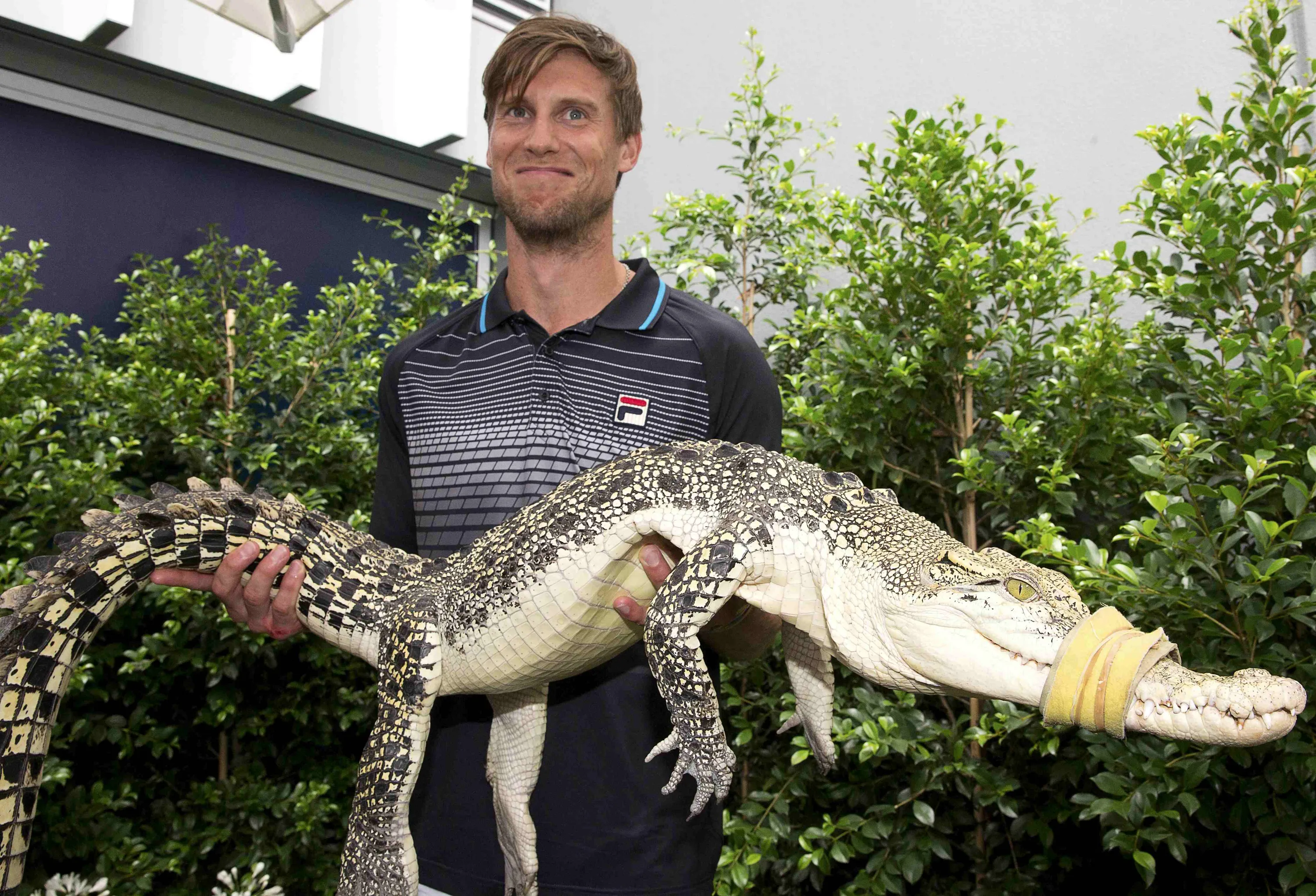 Italy's Andreas Seppi poses with a baby crocodile during a promotional event at the Australian Open tennis tournament at Melbourne Park, Australia, in this January 21, 2016 handout photo. (Photo by Fiona Hamilton/Reuters)