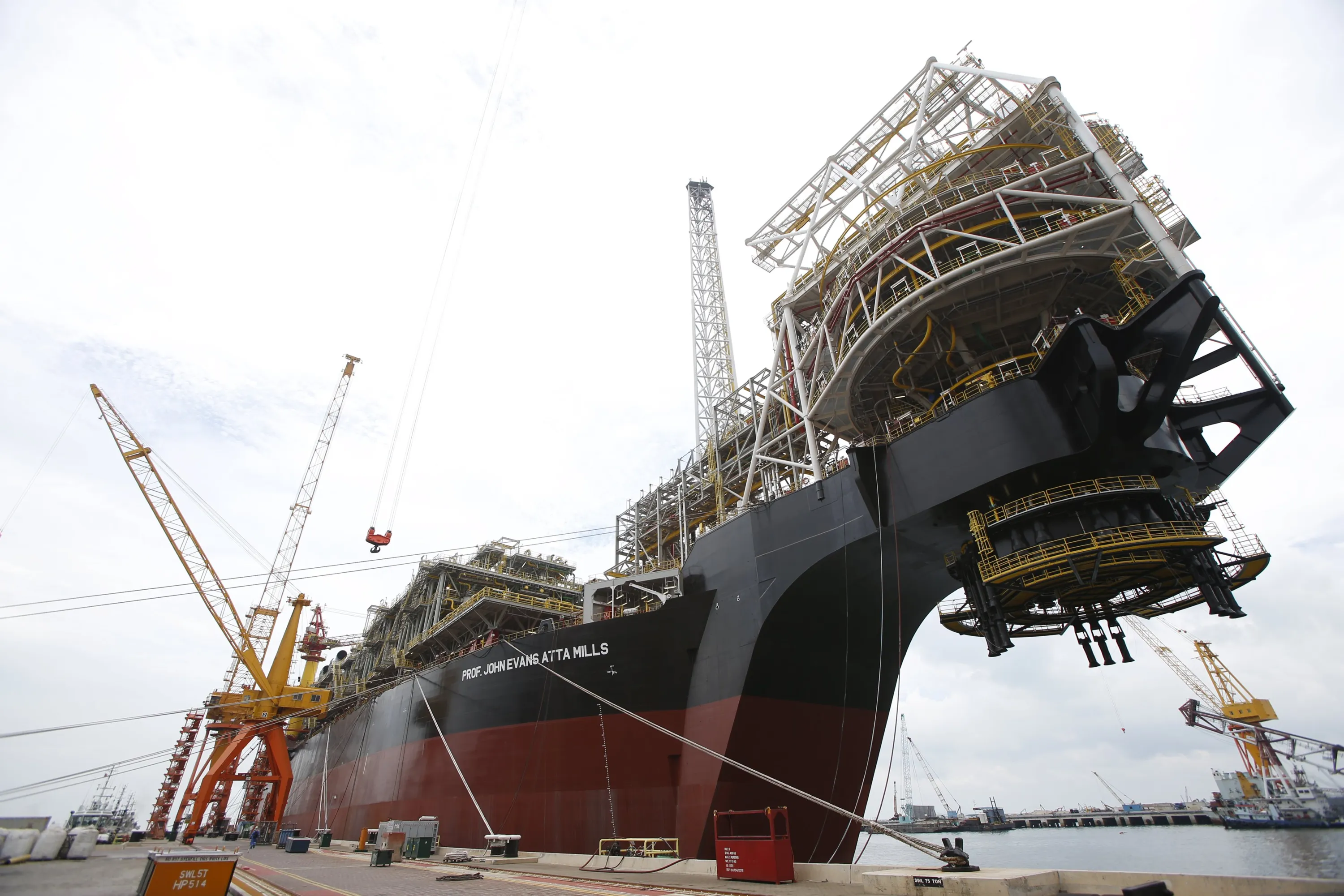 A view of Tullow Oil's Floating Production, Storage and Offloading vessel (FPSO) Prof. John Evans Atta Mills which was completed at Sembcorp Marine's Jurong Shipyard in Singapore January 20, 2016. Amid one of the deepest oil price crashes in history, Britain's Tullow Oil is sending one of the world's biggest floating deep-water oil production platforms to West Africa to pump crude for at least 20 years. (Photo by Edgar Su/Reuters)