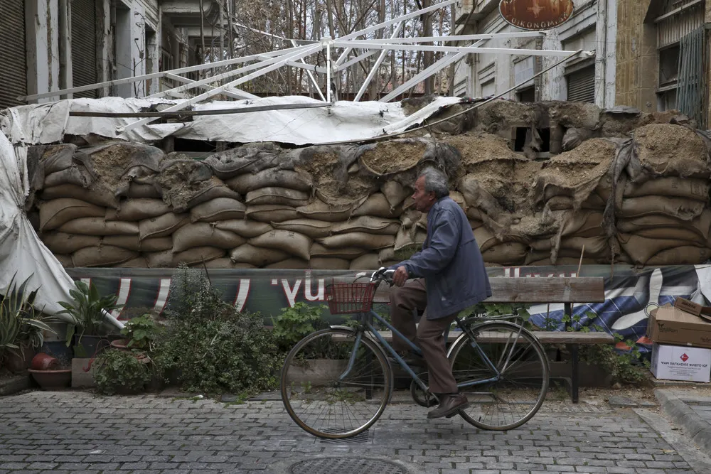 A man rides a bicycle past a barricade outside the U.N. buffer zone in Nicosia, Cyprus January 21, 2016. (Photo by Yiannis Kourtoglou/Reuters)