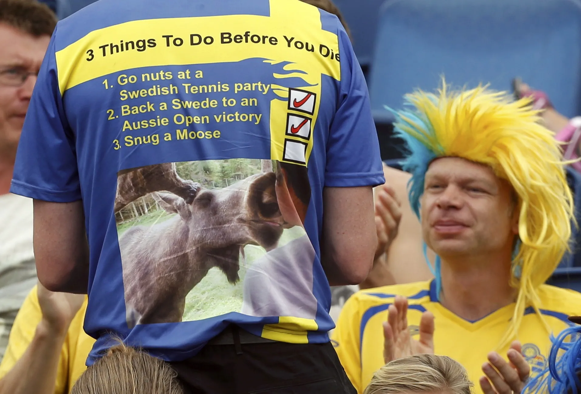 The shirt of a supporter of Sweden's Johanna Larsson is pictured in the stands during her second round match against Madison Brengle of the U.S. at the Australian Open tennis tournament at Melbourne Park, Australia, January 21, 2016. (Photo by Brandon Malone/Reuters)