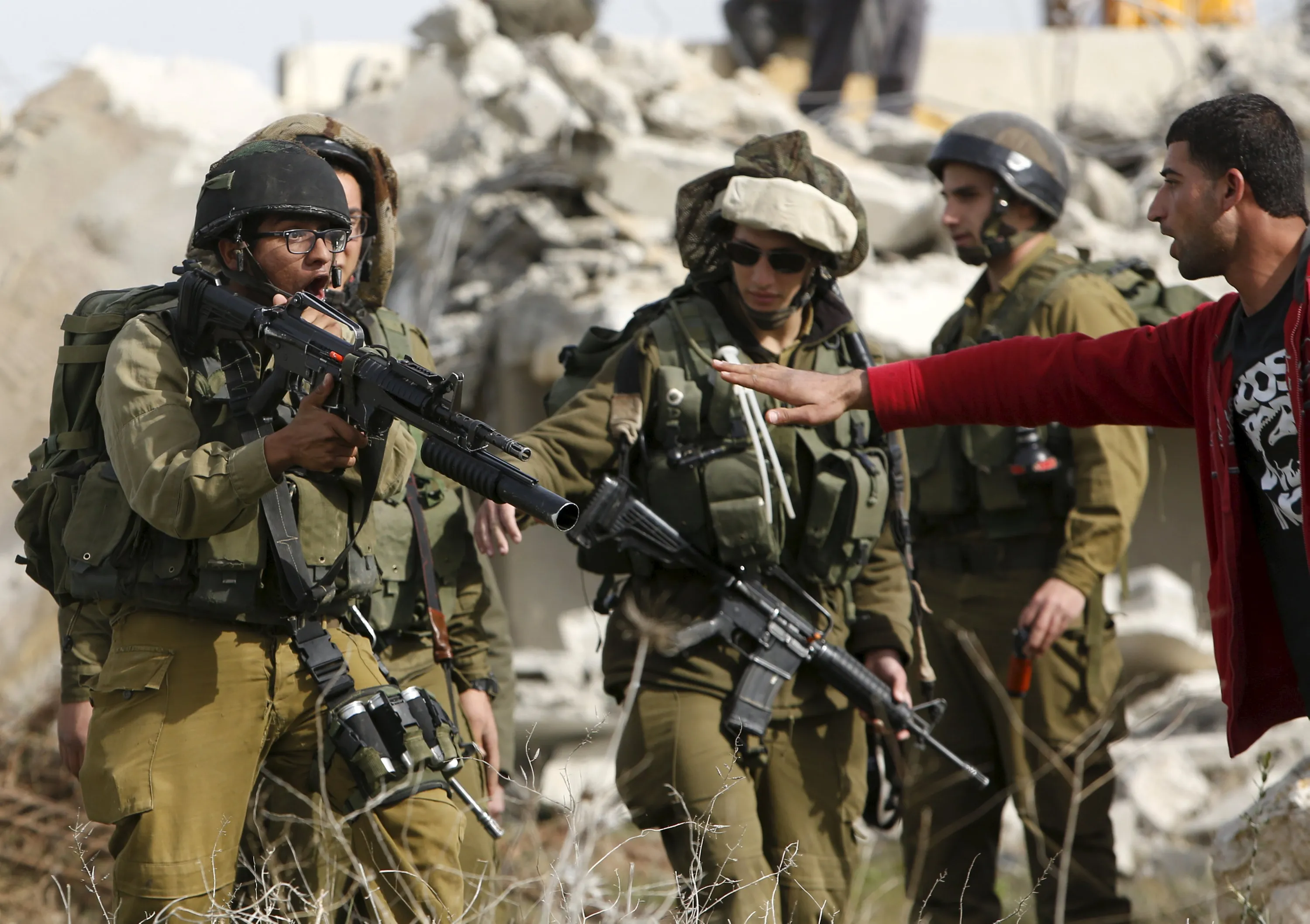 A Palestinian man argues with Israeli soldiers during the demolition of a Palestinian house at the order of the Israeli army as he tries to stop the demolition in the West Bank village of Biet Ula, west of Hebron January 21, 2016. The owners of the house said they were informed by the Israeli army that the demolition was carried out because they did not have an Israeli-issued construction permit. (Photo by Mussa Qawasma/Reuters)