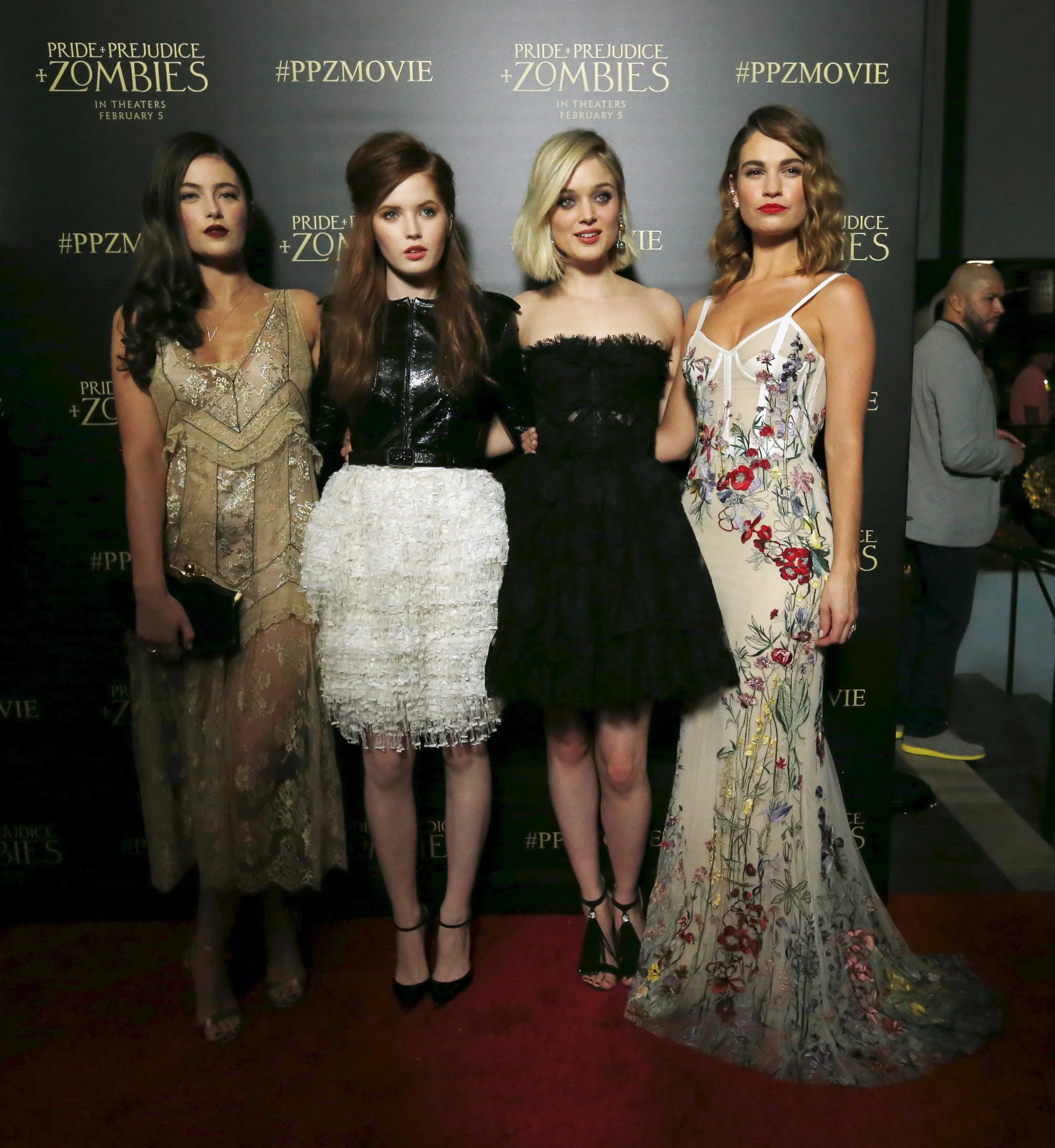 Cast members (from L-R) Millie Brady, Ellie Bamber, Bella Heathcote and Lily James pose at the premiere of “Pride and Prejudice and Zombies” in Los Angeles, California January 21, 2016. The movie opens in the U.S. on February 5. (Photo by Mario Anzuoni/Reuters)