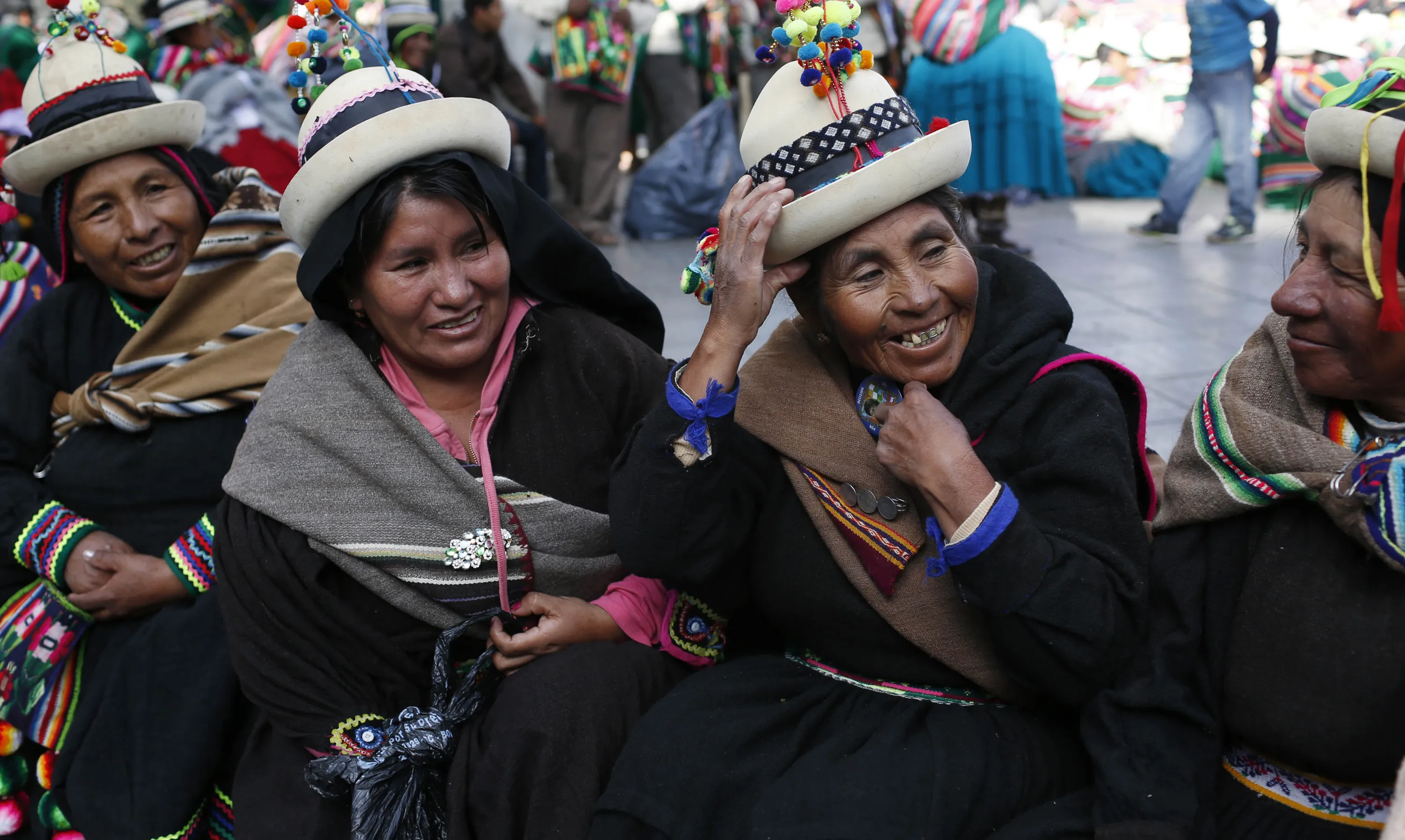 Quechua women gather outside the National Congress before the State of the Nation address, in La Paz, Bolivia, Friday, January 22, 2016. Bolivian President Evo Morales, who won re-election in 2014 to a third term with 61 percent of the vote, is marking 10 years as the leader of the South American country. (Photo by Juan Karita/AP Photo)