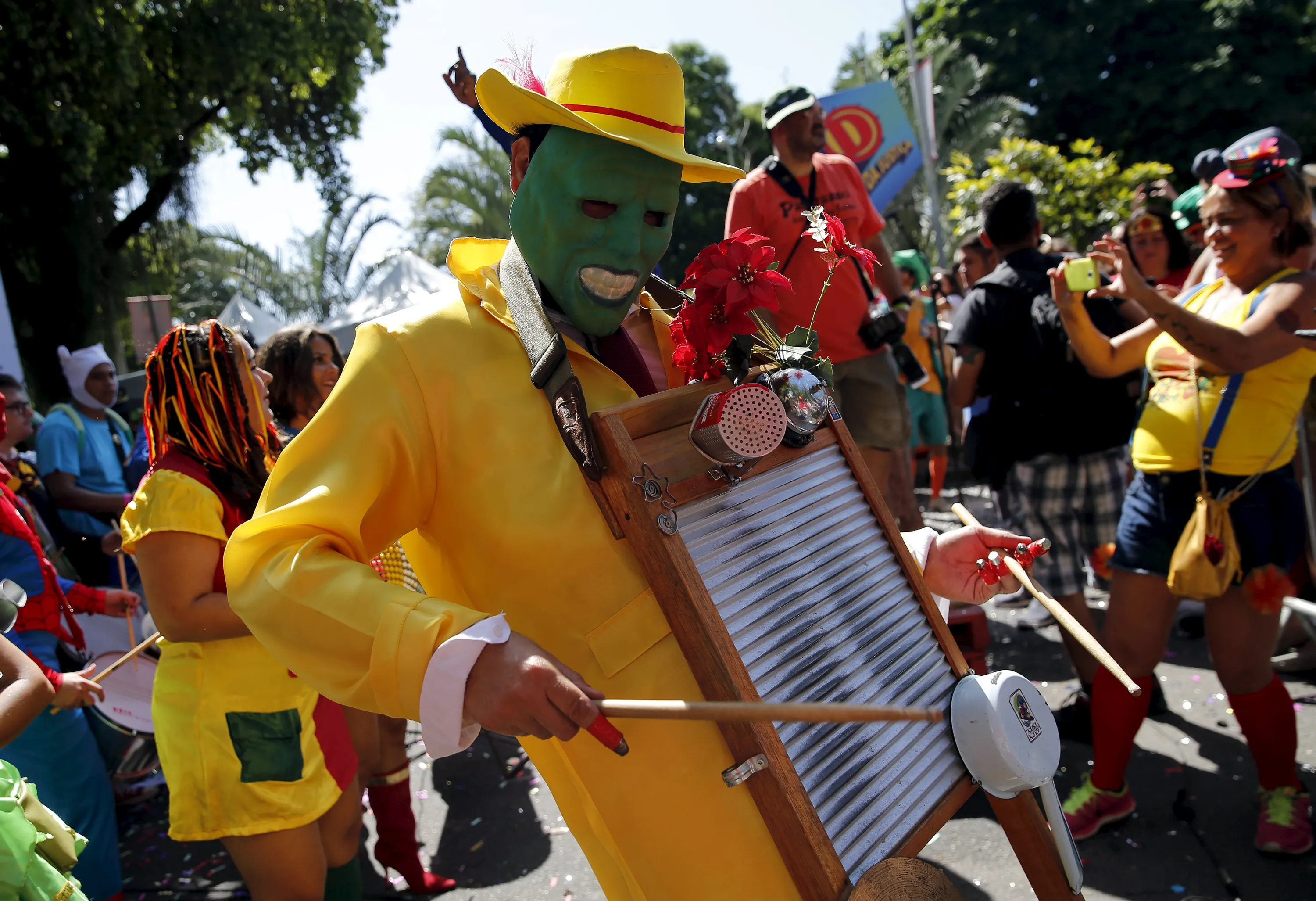 A reveller dressed as movie character “The Mask” takes part in the “Desliga da Justica” carnival parade during pre-carnival festivities in Rio de Janeiro, Brazil, January 23, 2016. (Photo by Sergio Moraes/Reuters)