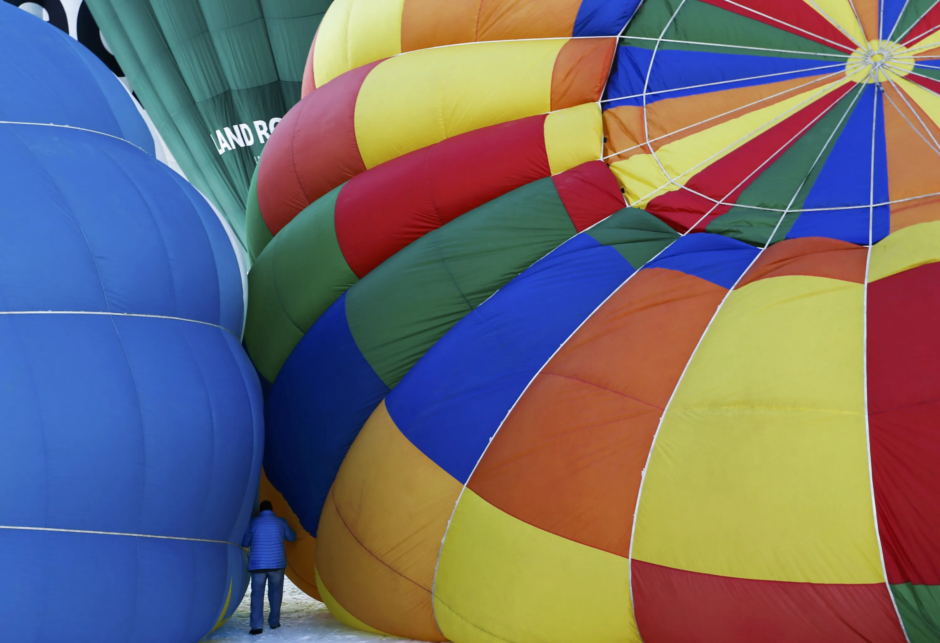 A man walks between inflated balloons during the 38th International Hot Air Balloon Week in Chateau-d'Oex, Switzerland January 23, 2016. (Photo by Denis Balibouse/Reuters)