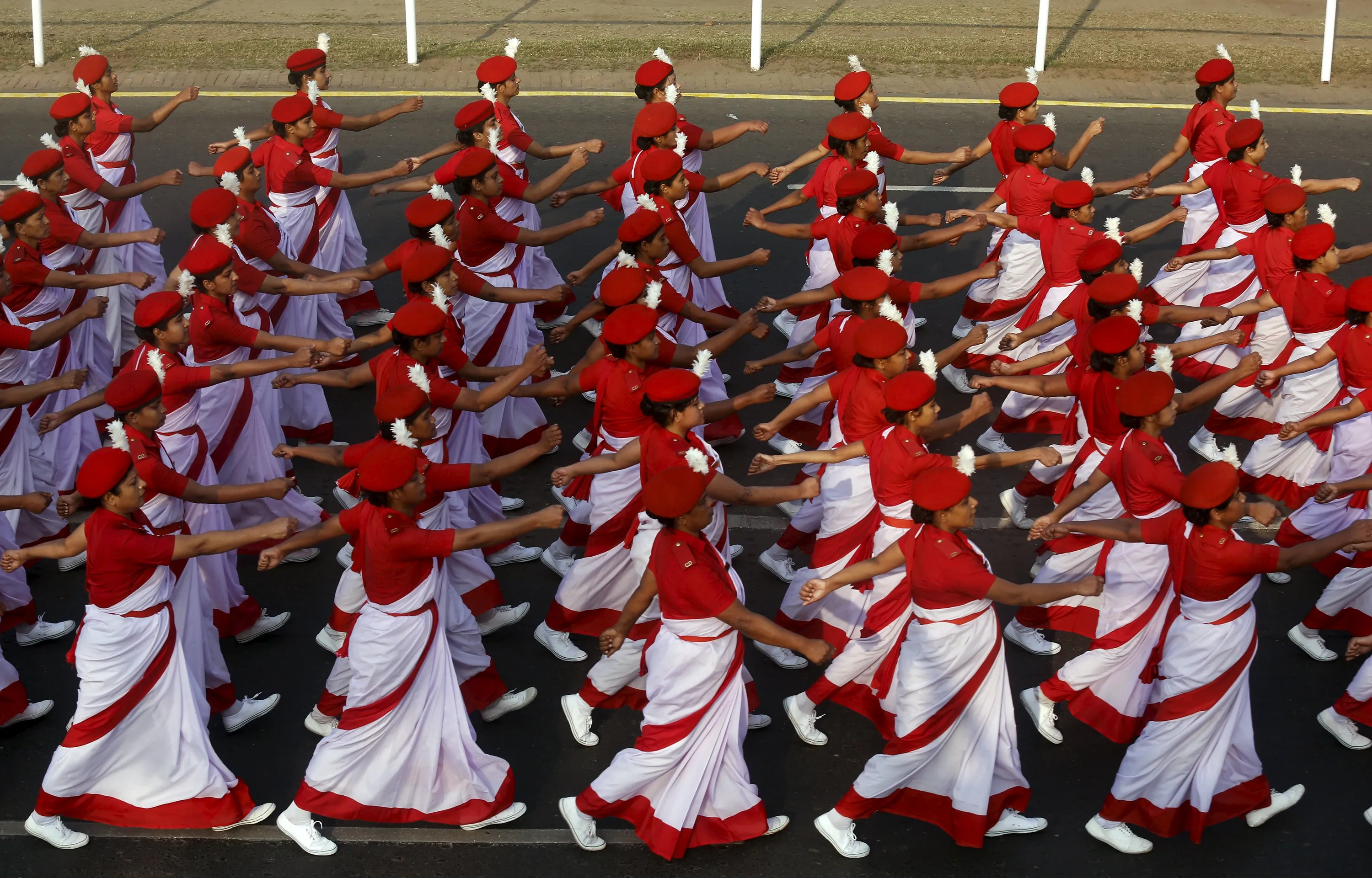 Female Indian civil defence personnel march during the full-dress rehearsal for the Republic Day parade in Kolkata, India, January 22, 2016. (Photo by Rupak De Chowdhuri/Reuters)