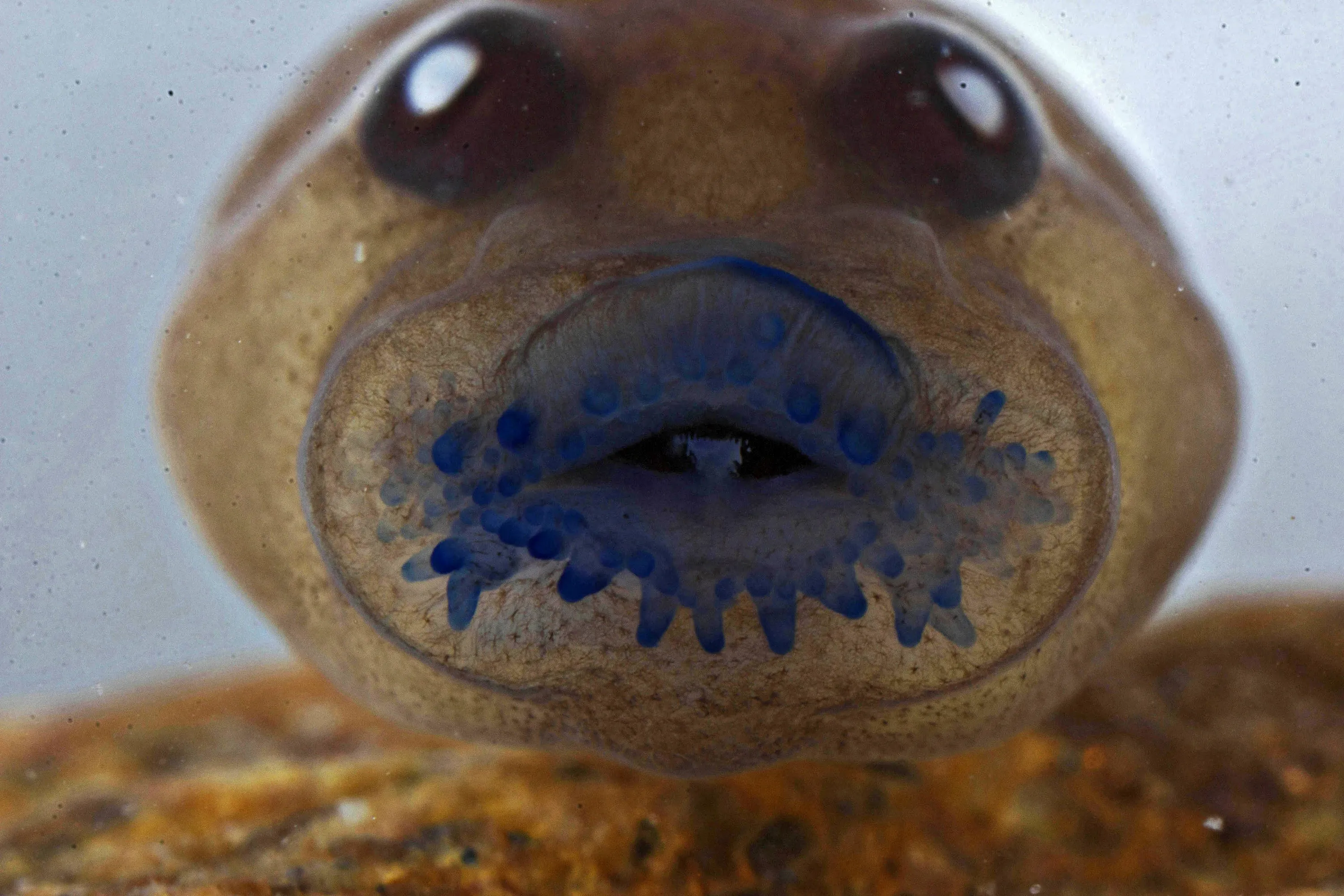 An undated handout image released by biologist S.D. Biju on 21 January 2016 shows a tadpole of a frog named Frankixalus jerdonii, belonging to a newly found genus of frogs. An unusual class of tree frogs that feeds on eggs laid by their mother as tadpoles has been rediscovered more than a century after they were thought to have died, scientists said. (Photo by S.D. Biju/EPA)