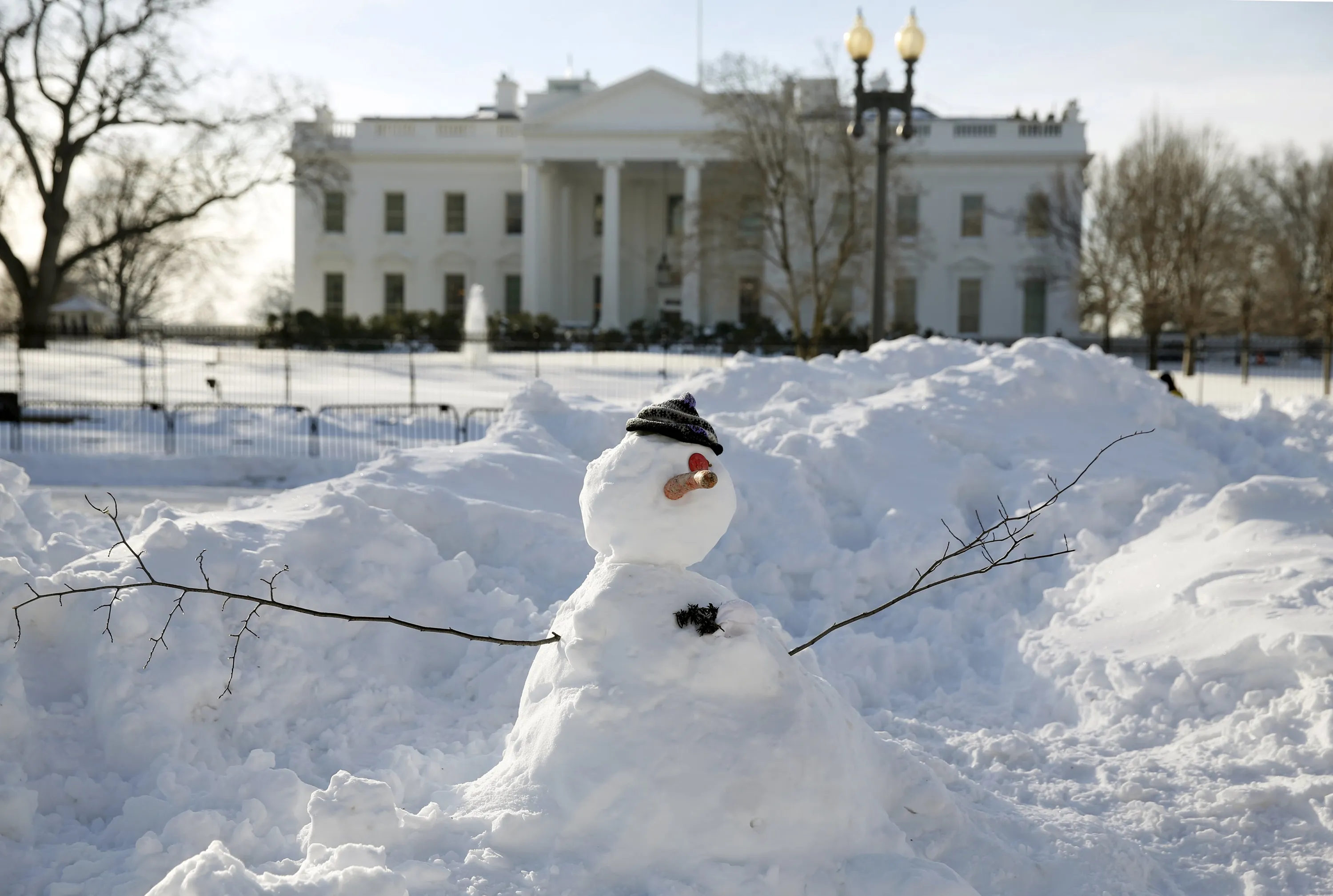 A snowman stands in front of the White House in Washington January 25, 2016. The Washington area is digging out from the weekend blizzard. (Photo by Kevin Lamarque/Reuters)