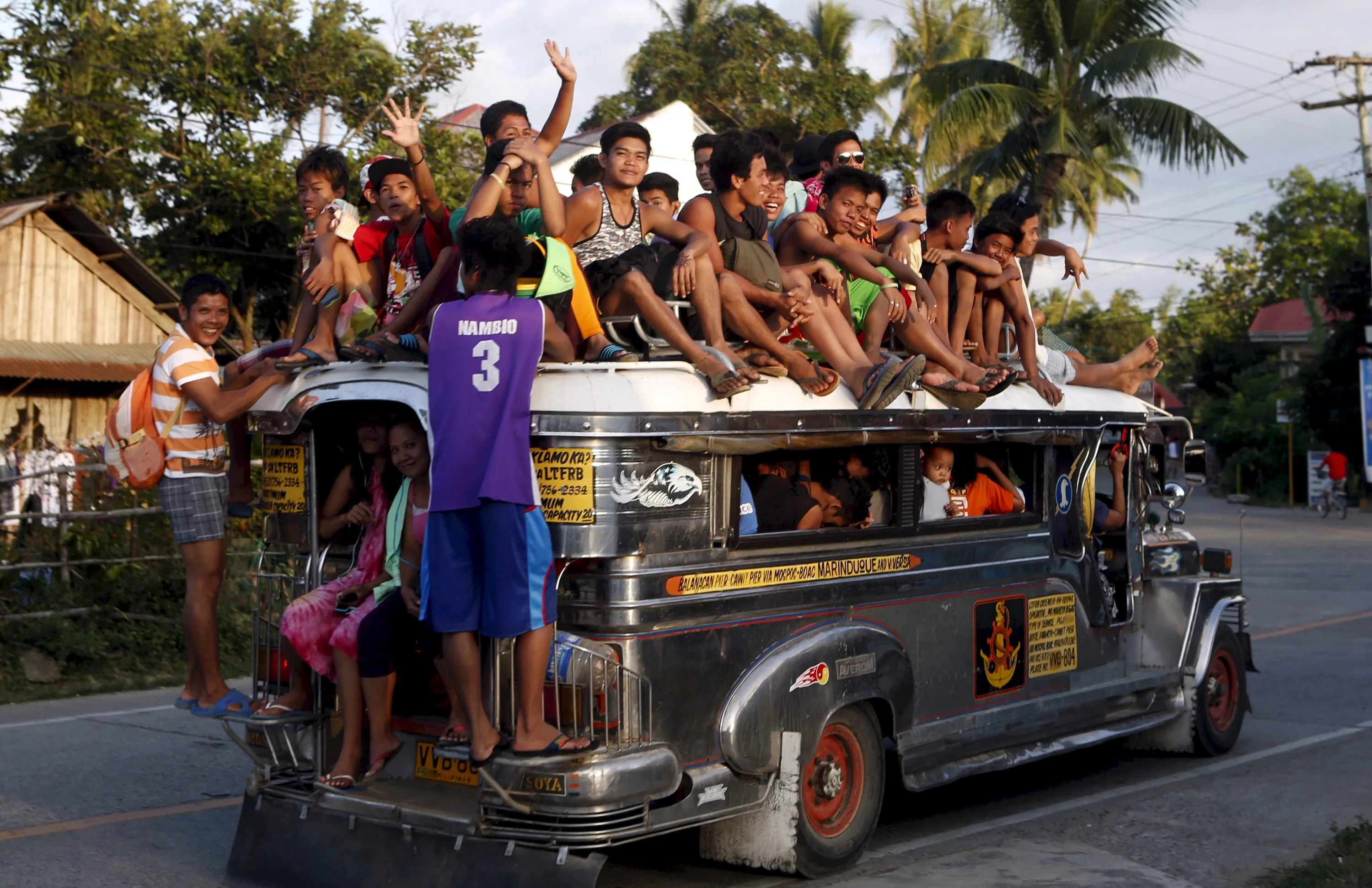 Residents ride on top of an overcrowded "Jeepney", a locally manufactured public transport, along a highway in Mogpog town on Marinduque island in central Philippines in this April 8, 2015 file photo. The Philippines is expected to release GDP data this week. (Photo by Erik De Castro/Reuters)