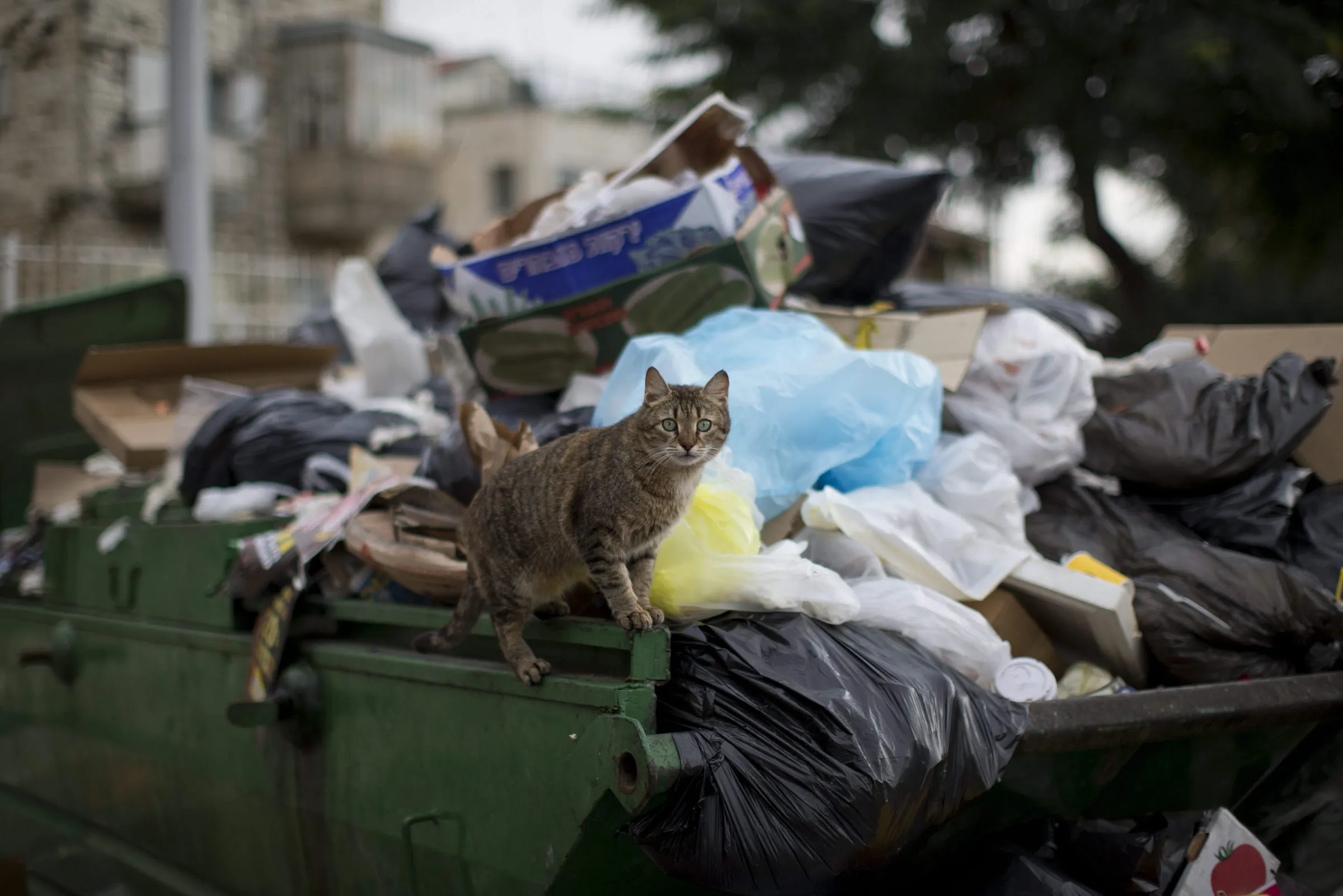 A stray cat stands on a garbage bin in central Jerusalem, Israel, 07 January 2016. (Photo by Abir Sultan/EPA)