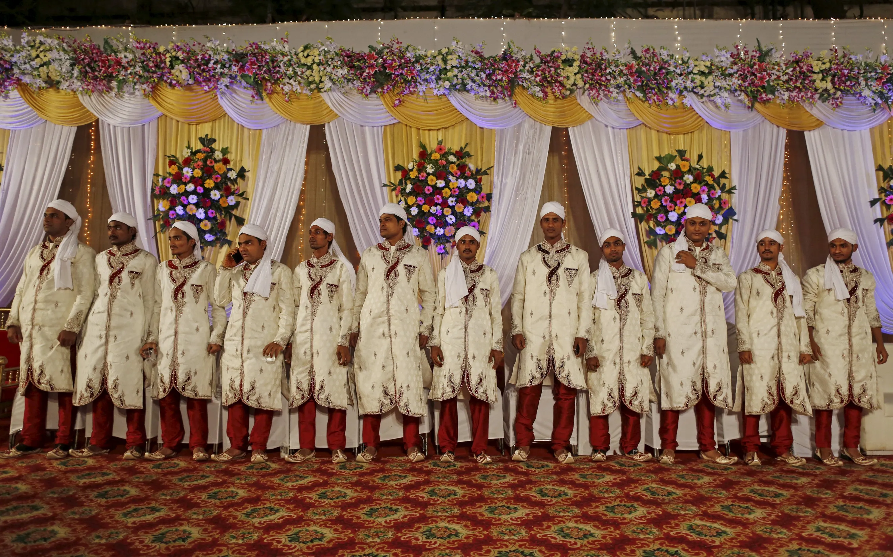 Muslim grooms wait for the arrival of their brides during a mass marriage ceremony in Mumbai, India, January 27, 2016. (Photo by Danish Siddiqui/Reuters)