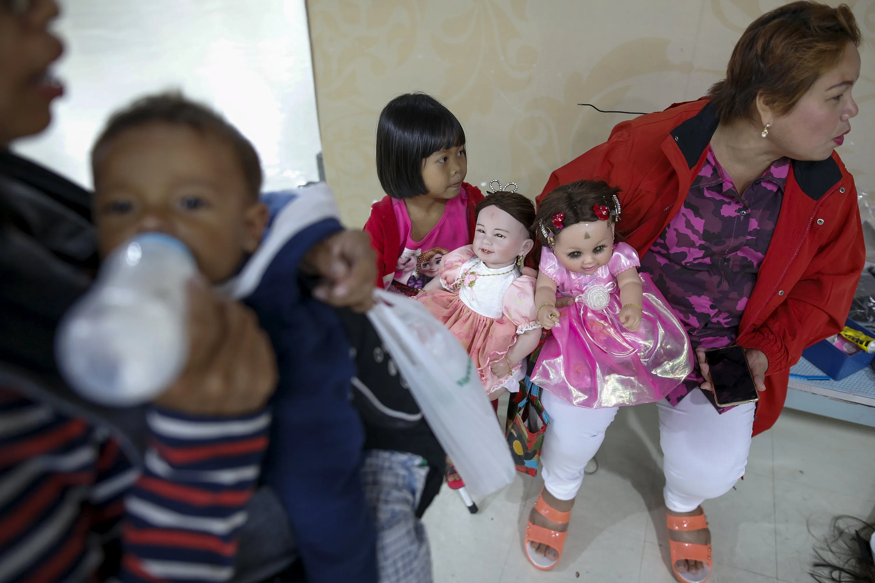 Devotees hold up their “child angel” dolls inside a department store in Bangkok, Thailand, January 26, 2016. (Photo by Athit Perawongmetha/Reuters)
